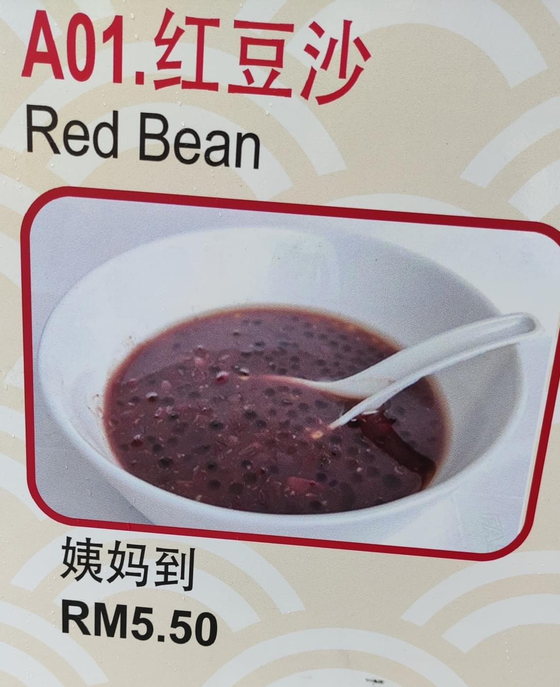 ▼ ① 红豆沙 – “姨妈到” RM5.50