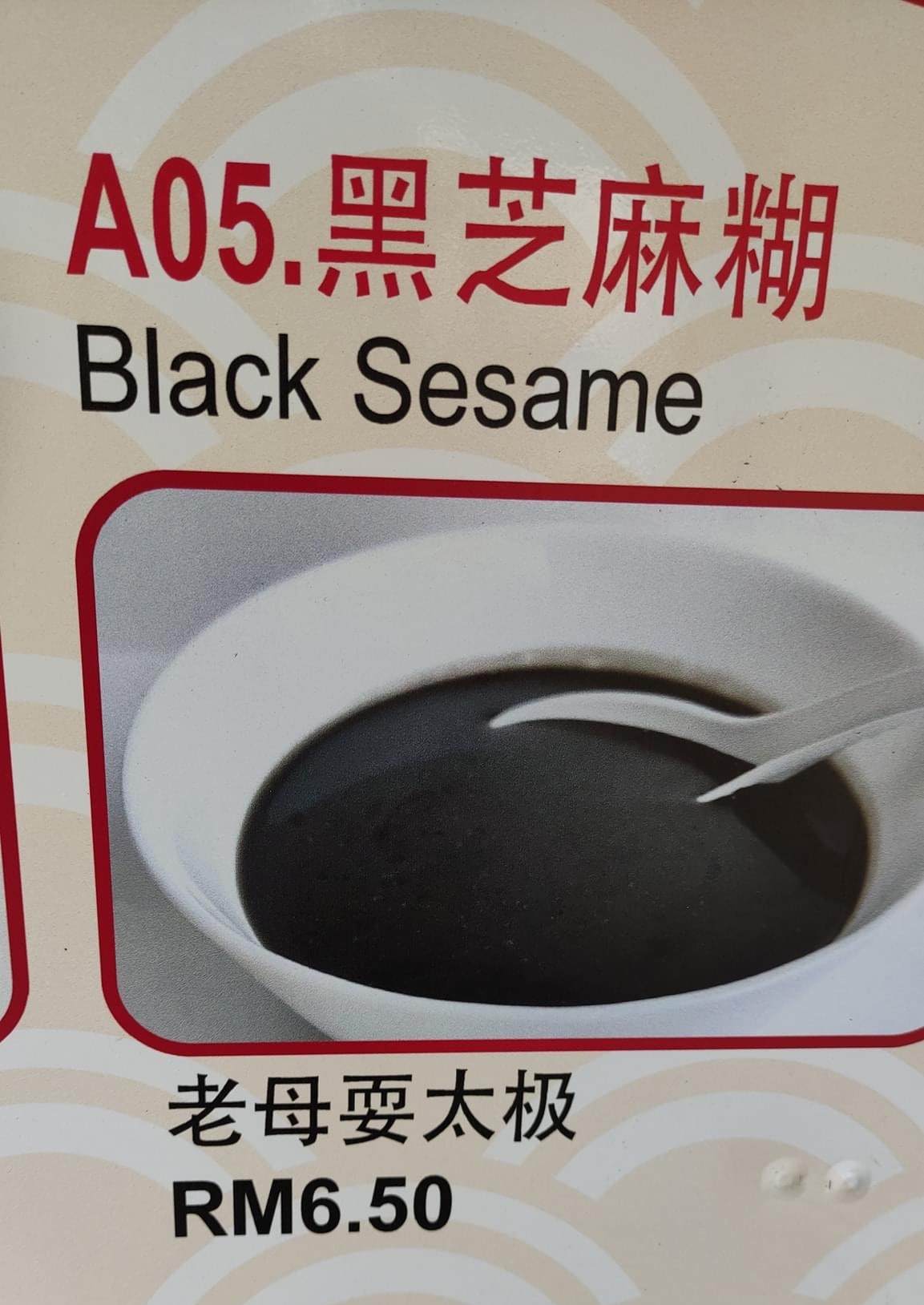 ▼ ⑤ 黑芝麻糊 – “老母耍太极” RM6.50