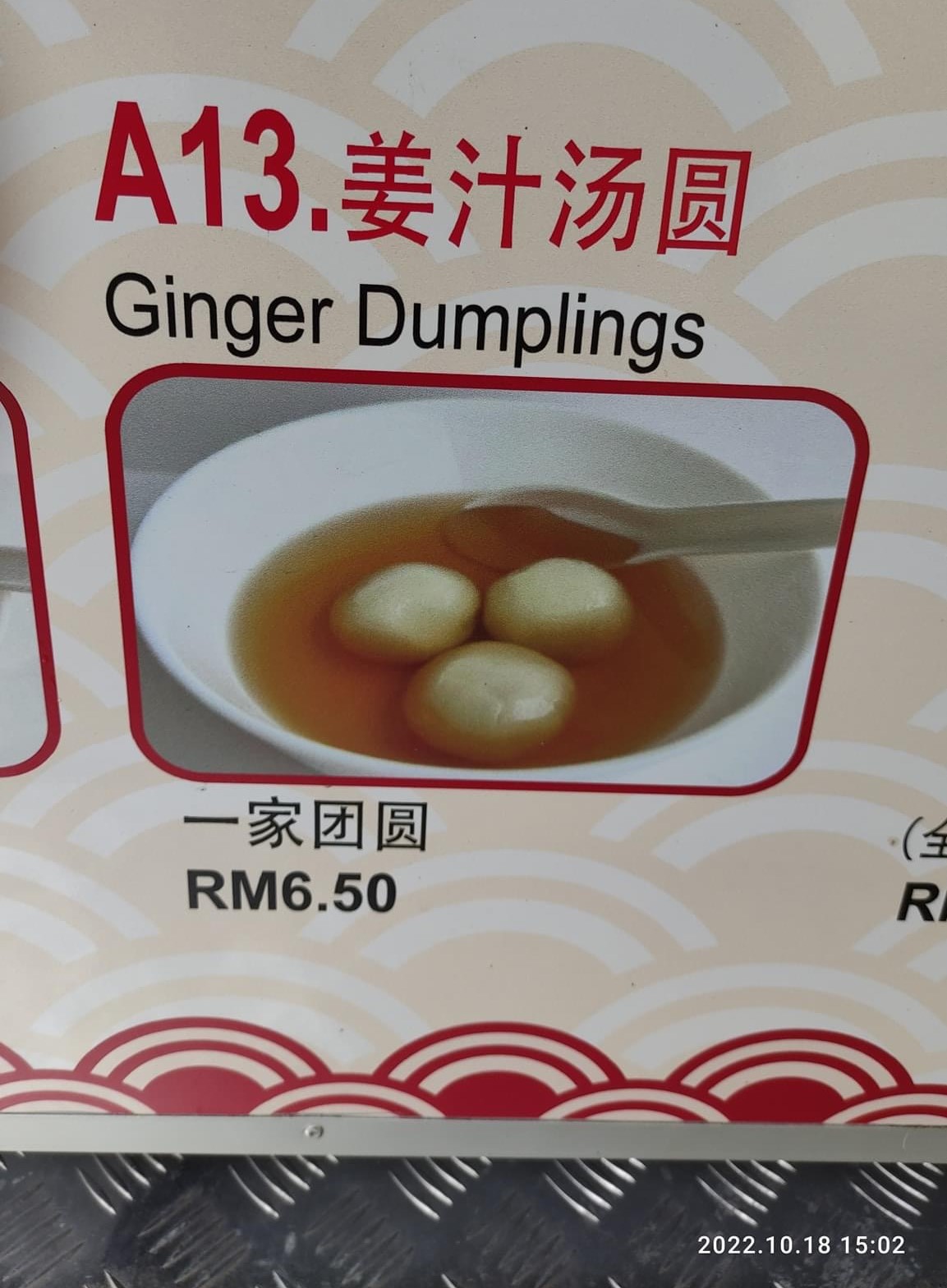 ▼ ⑧ 姜汁汤圆 – “一家团圆” RM6.50