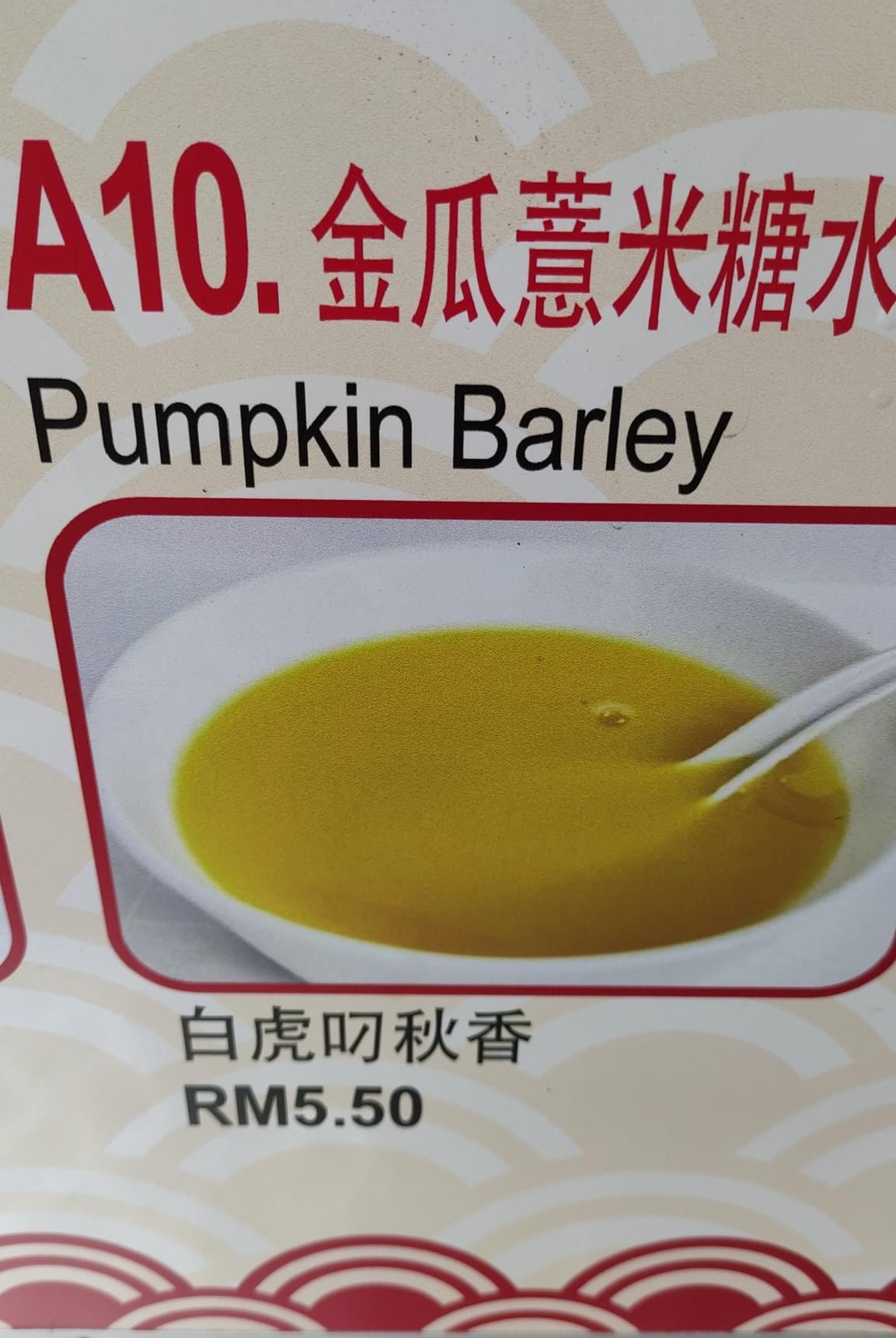 ▼ ⑪ 金瓜薏米糖水 – “白虎叼秋香” RM5.50