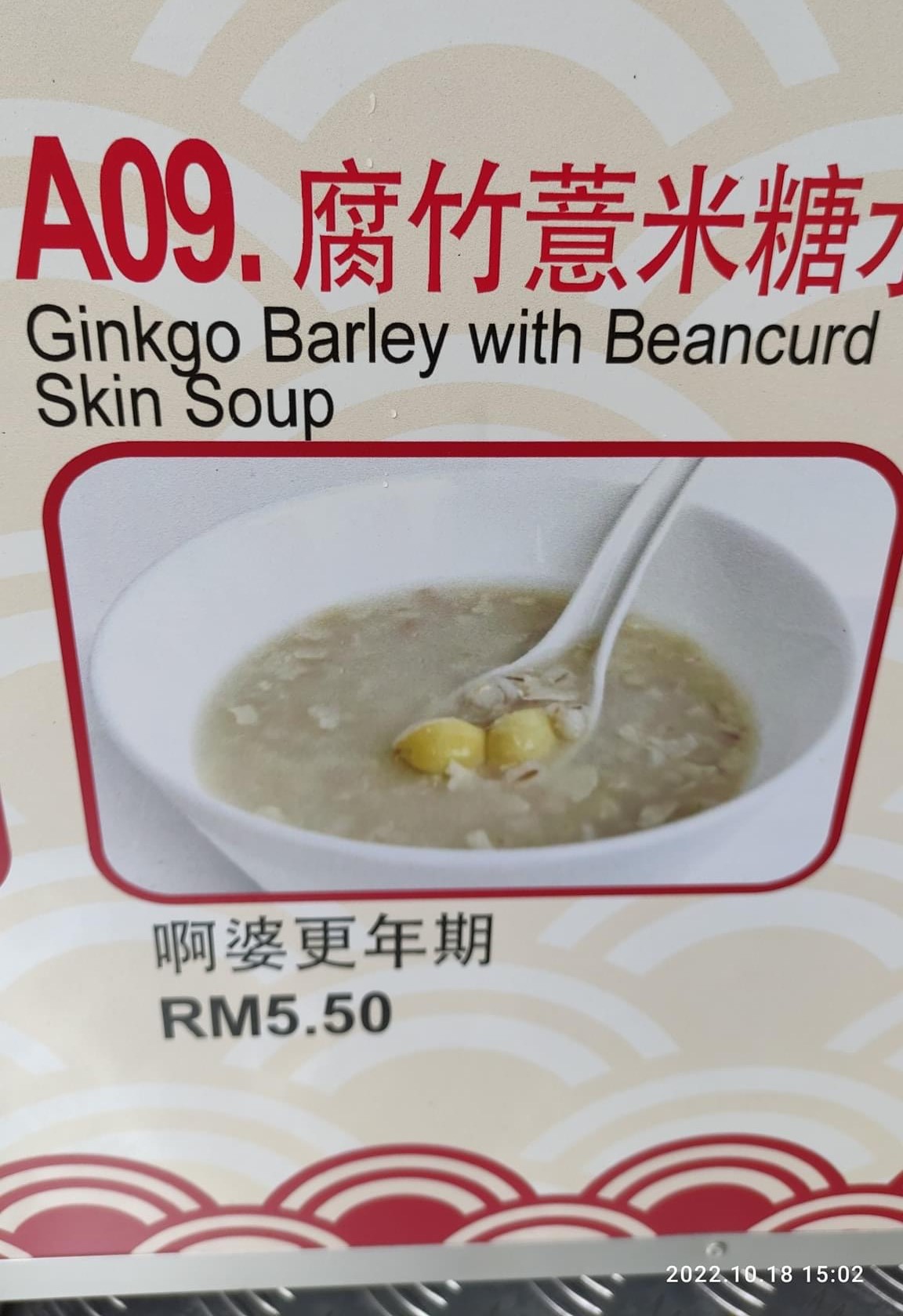 ▼ ⑫ 腐竹薏米糖水 – “啊婆更年期” RM5.50