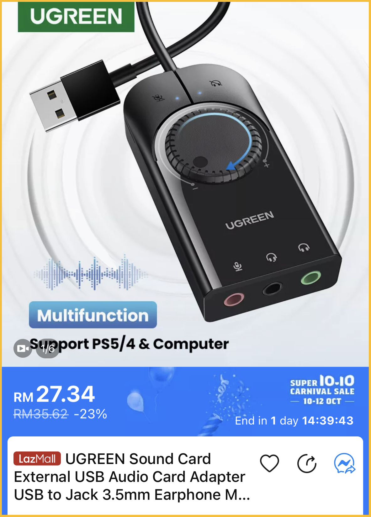 ▪ ② UGREEN Sound Card External USB Audio Card Adapter