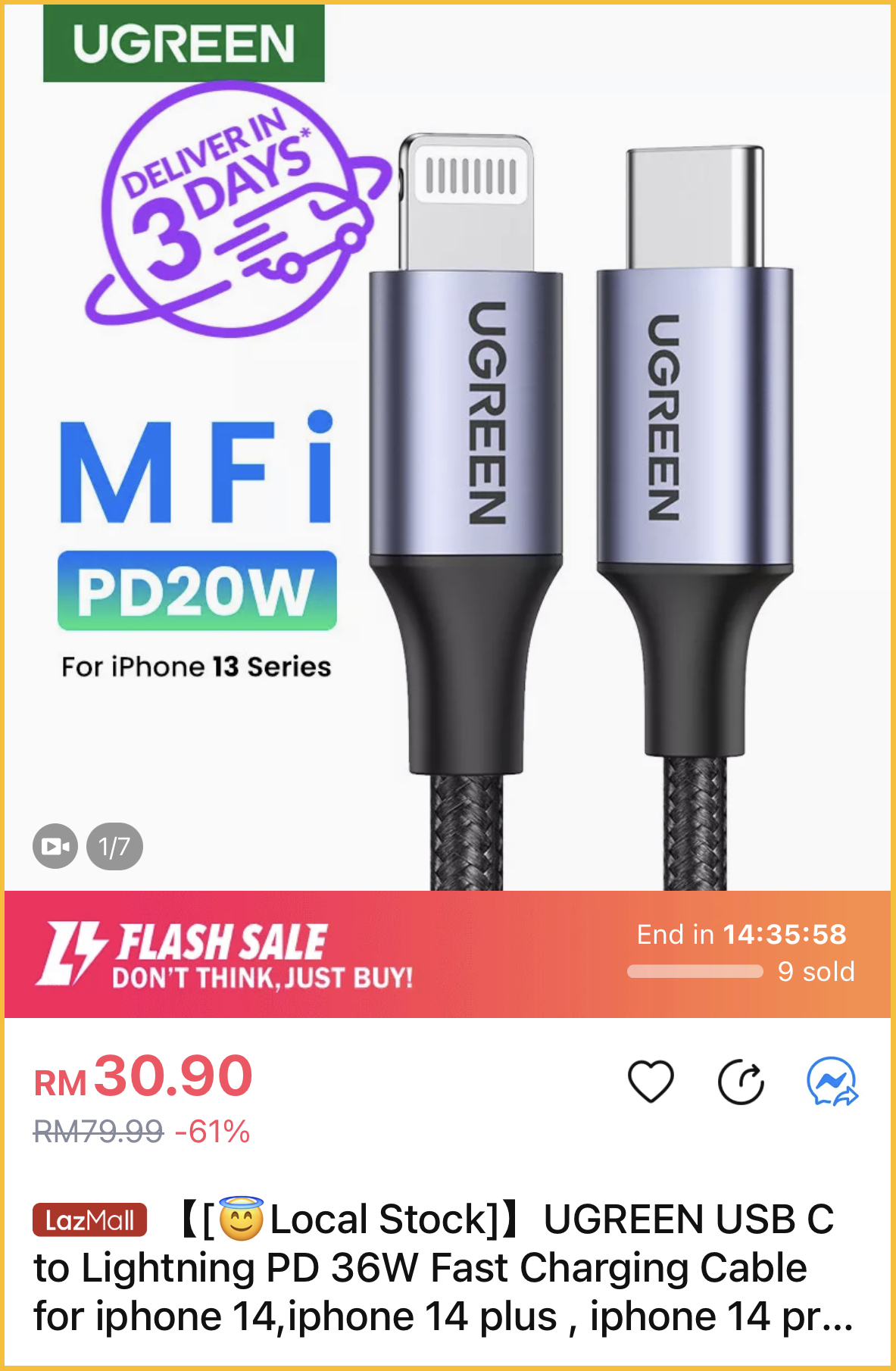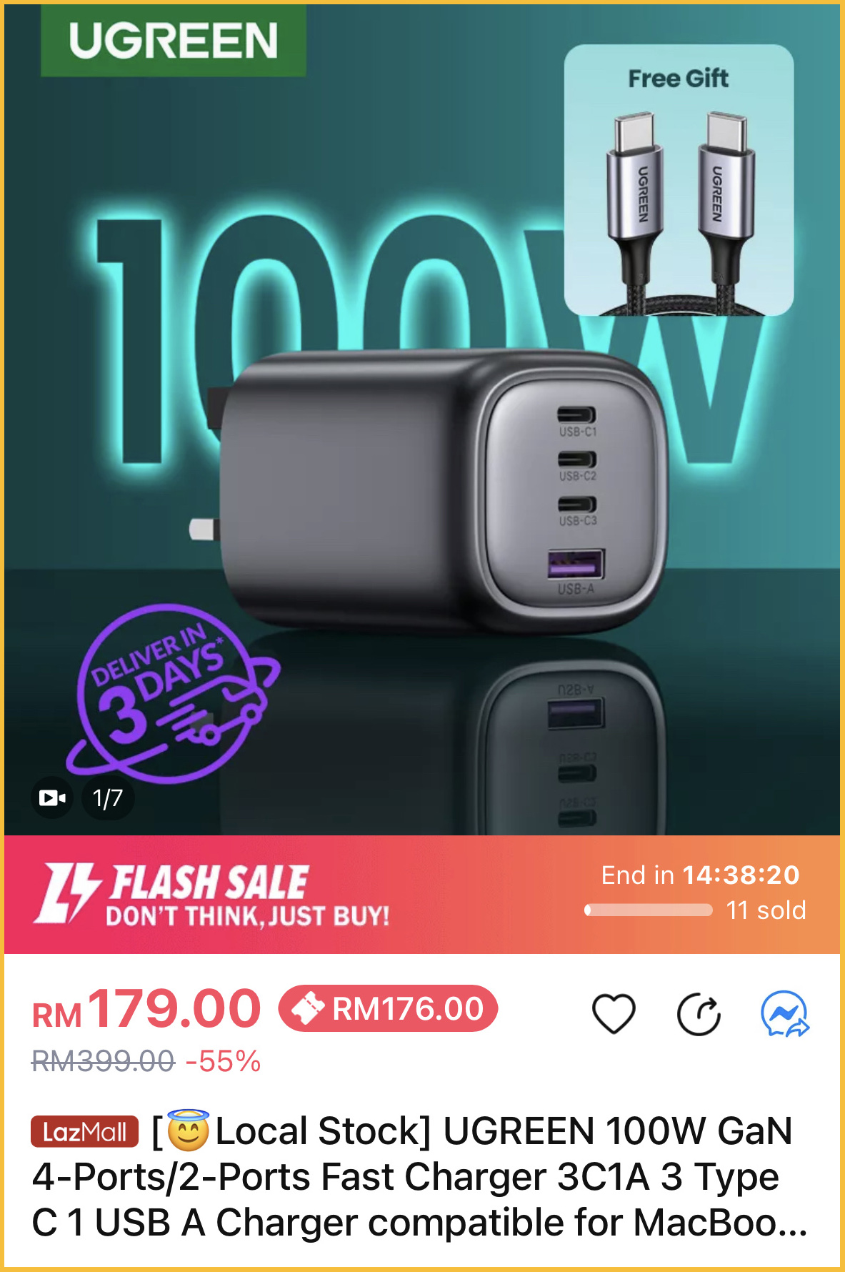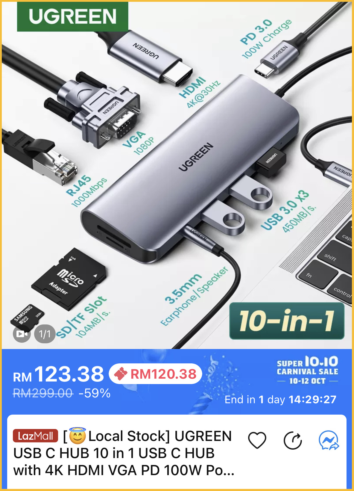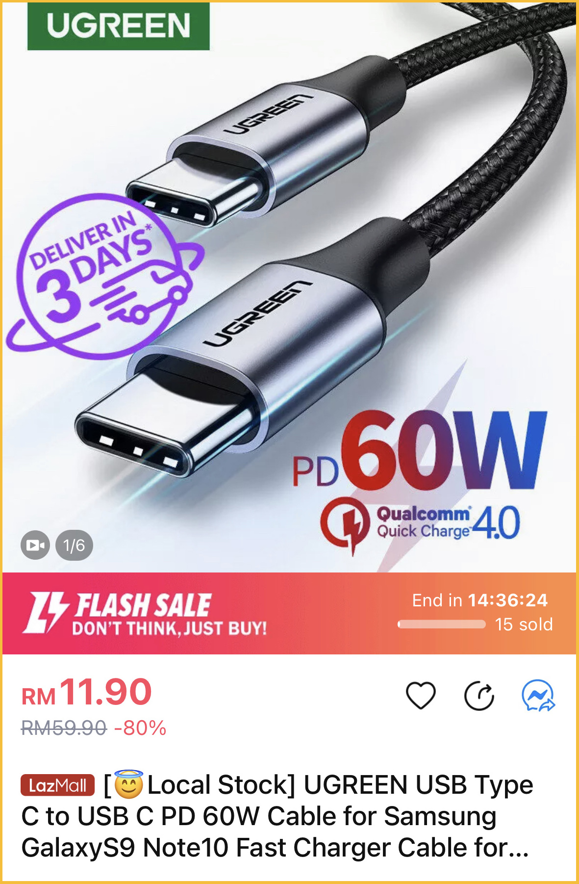 Lazada 双十购物节的最后这两天还可以买什么呢?UGREEN 3C配件通通大减价,今天多款热卖商品都在 Flash Sale 中,赶紧抢购咯~