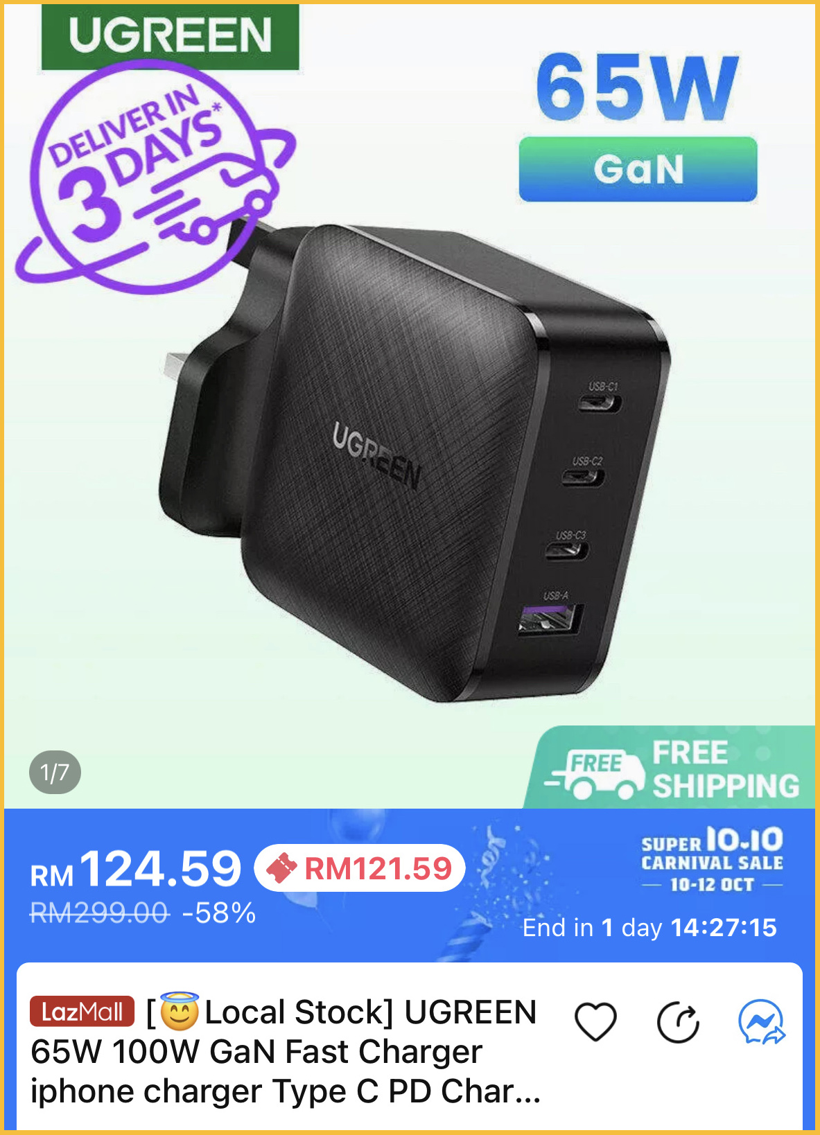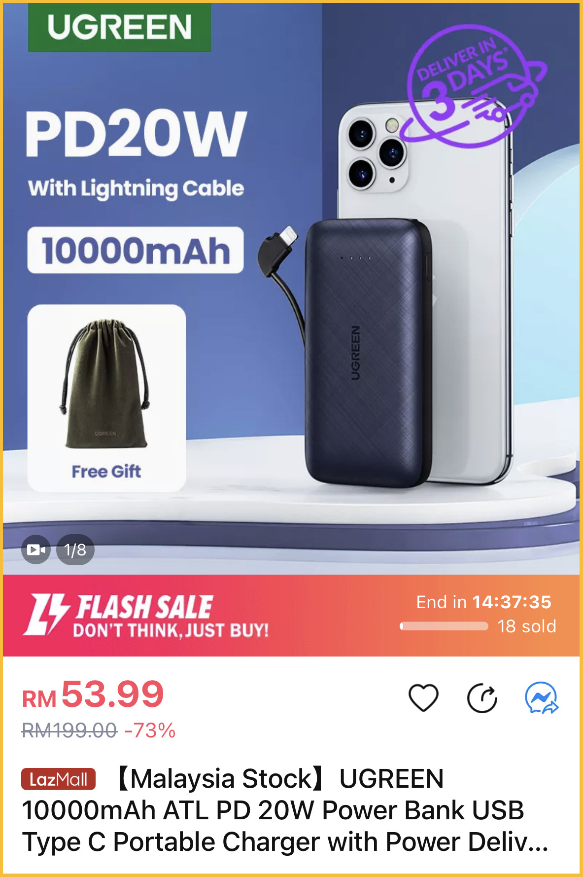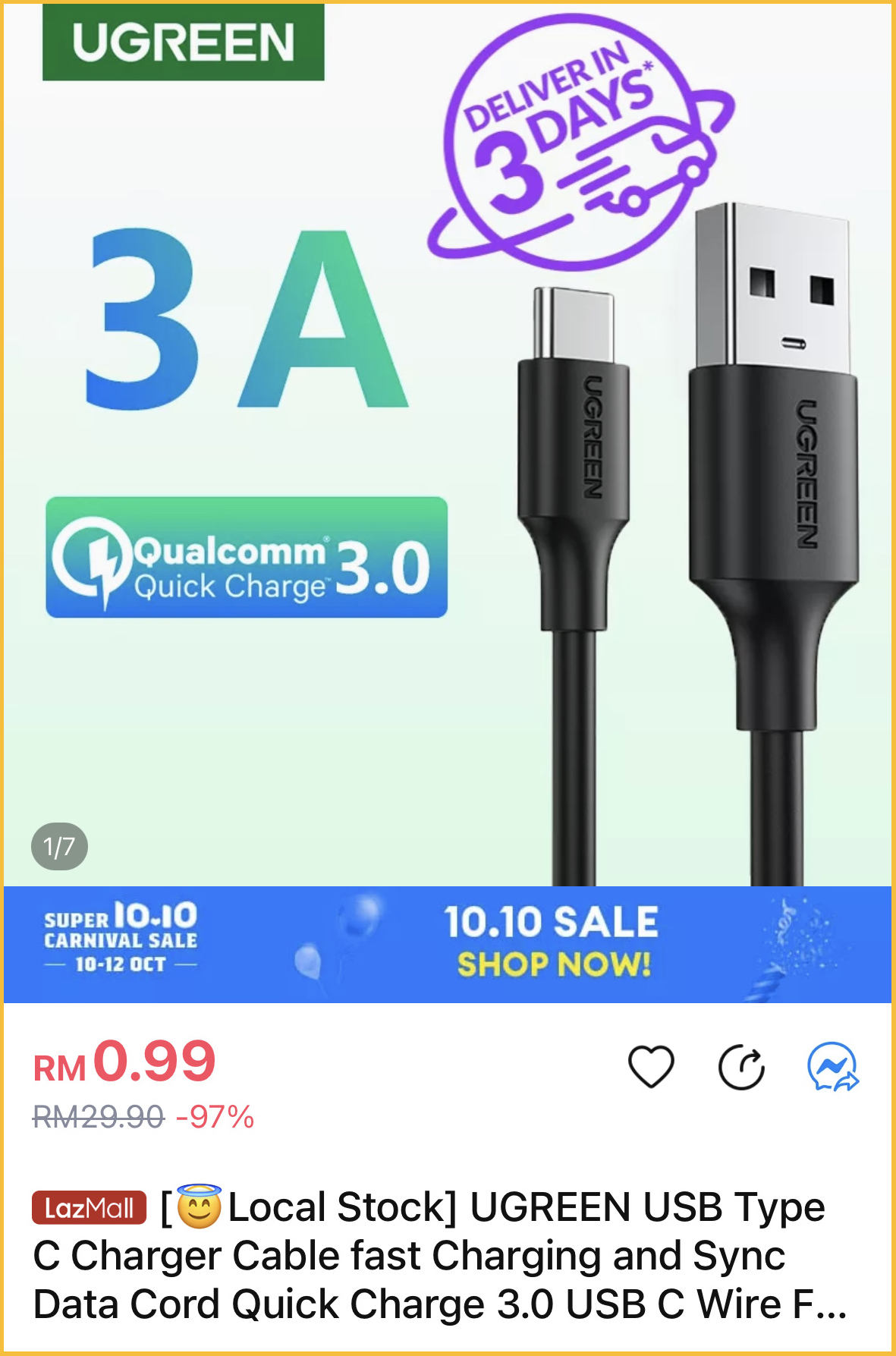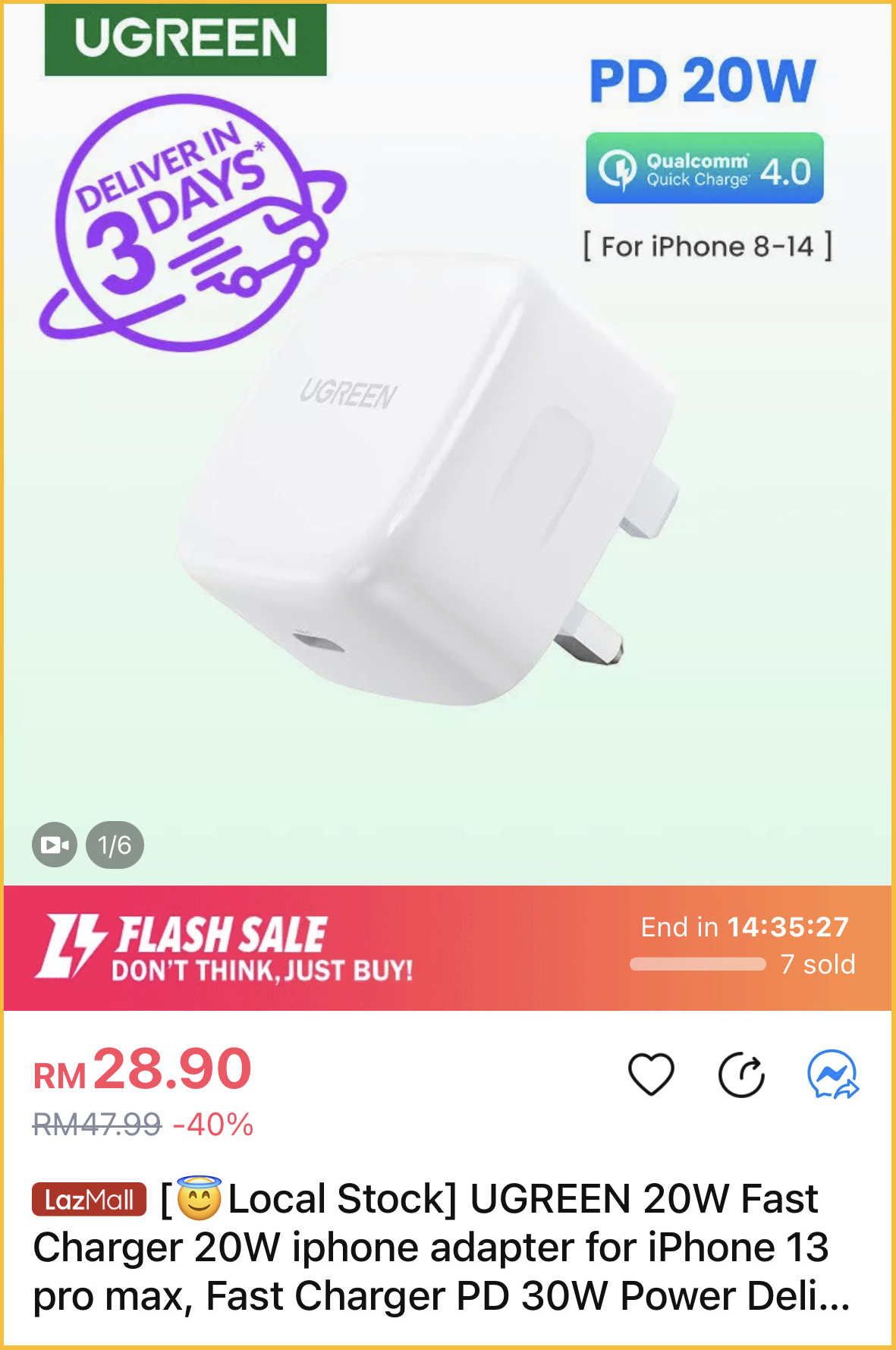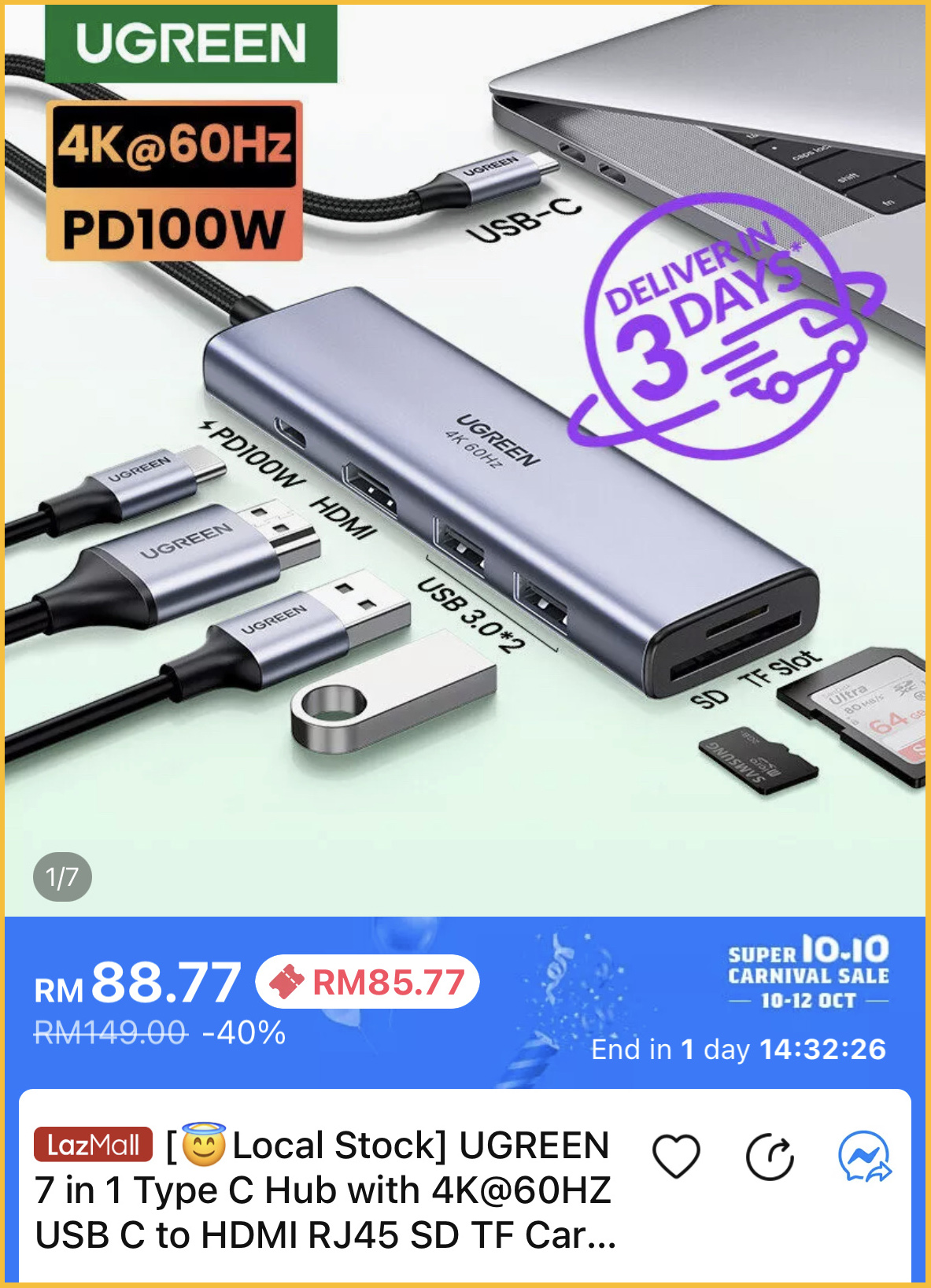 Lazada 双十购物节的最后这两天还可以买什么呢?UGREEN 3C配件通通大减价,今天多款热卖商品都在 Flash Sale 中,赶紧抢购咯~