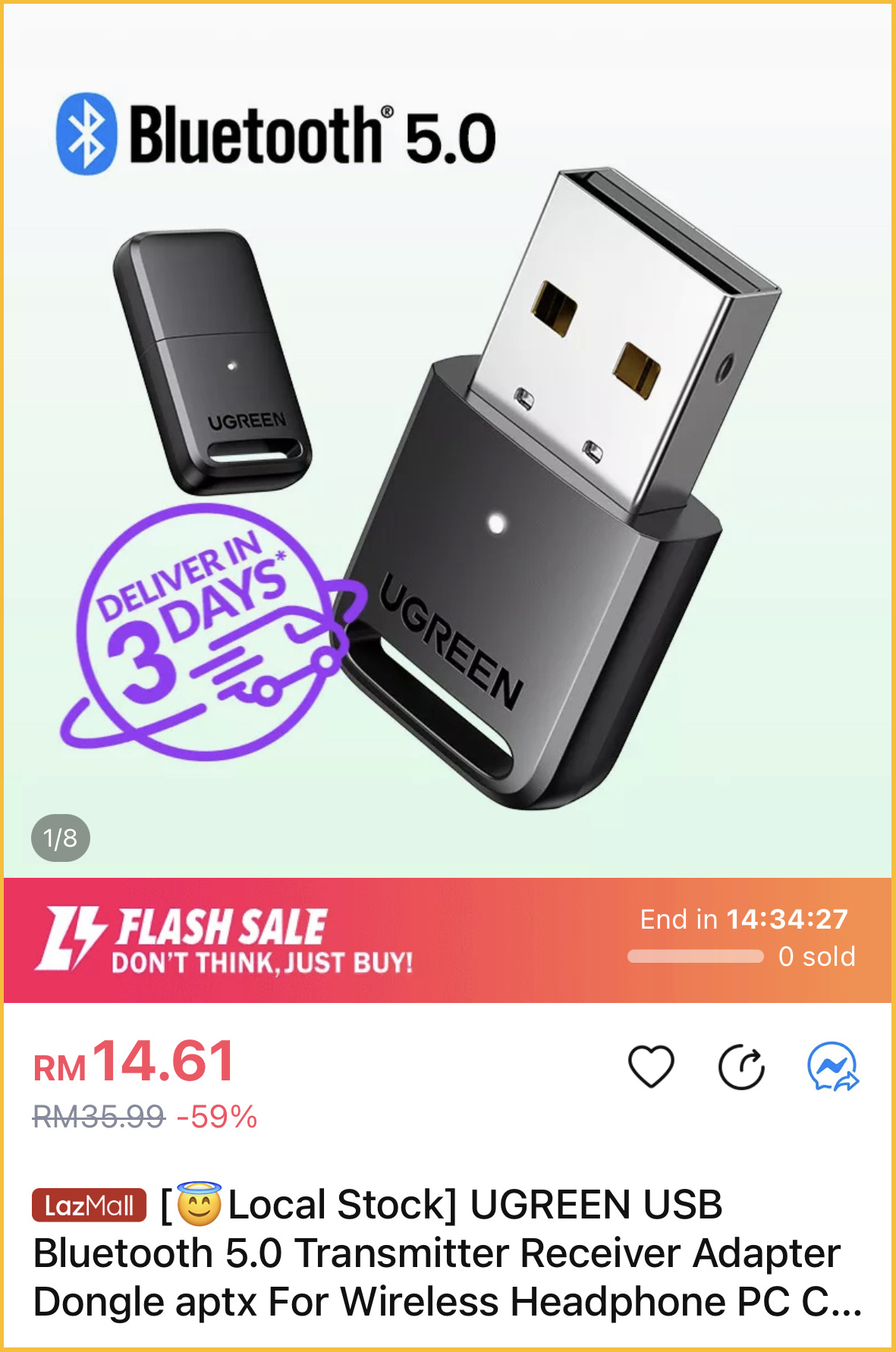 ▪ ② UGREEN USB Bluetooth 5.0 Transmitter Receiver Adapter