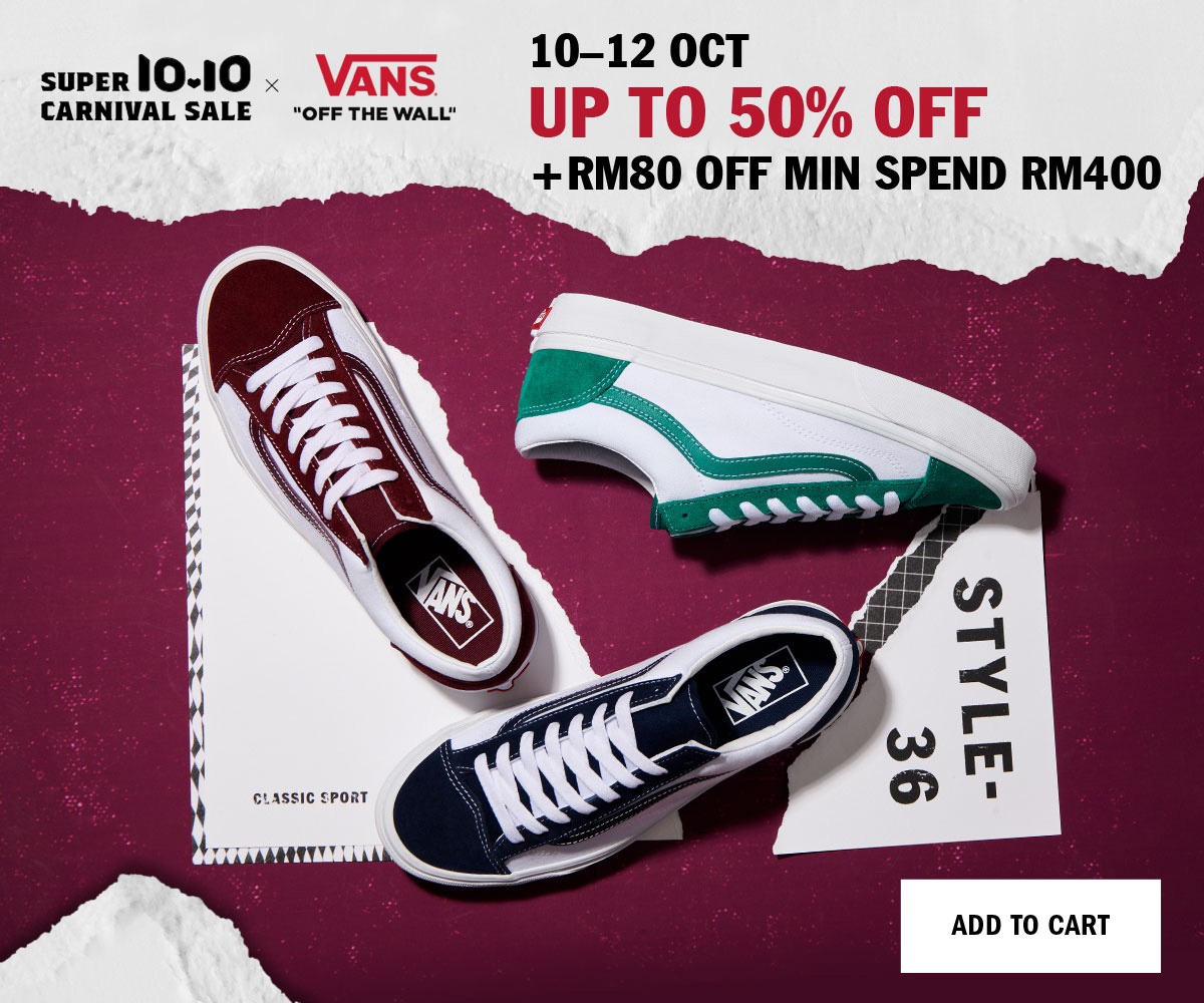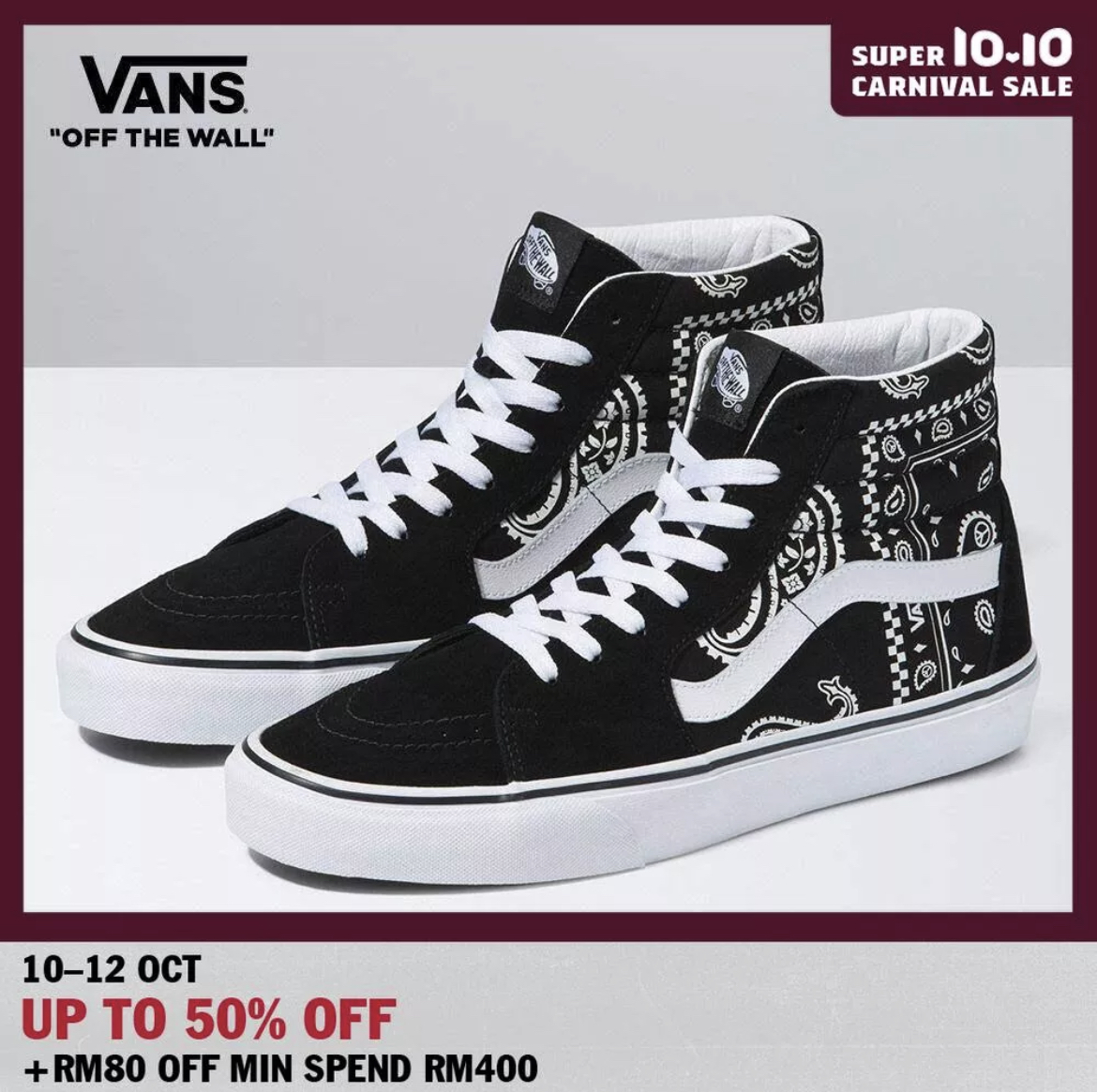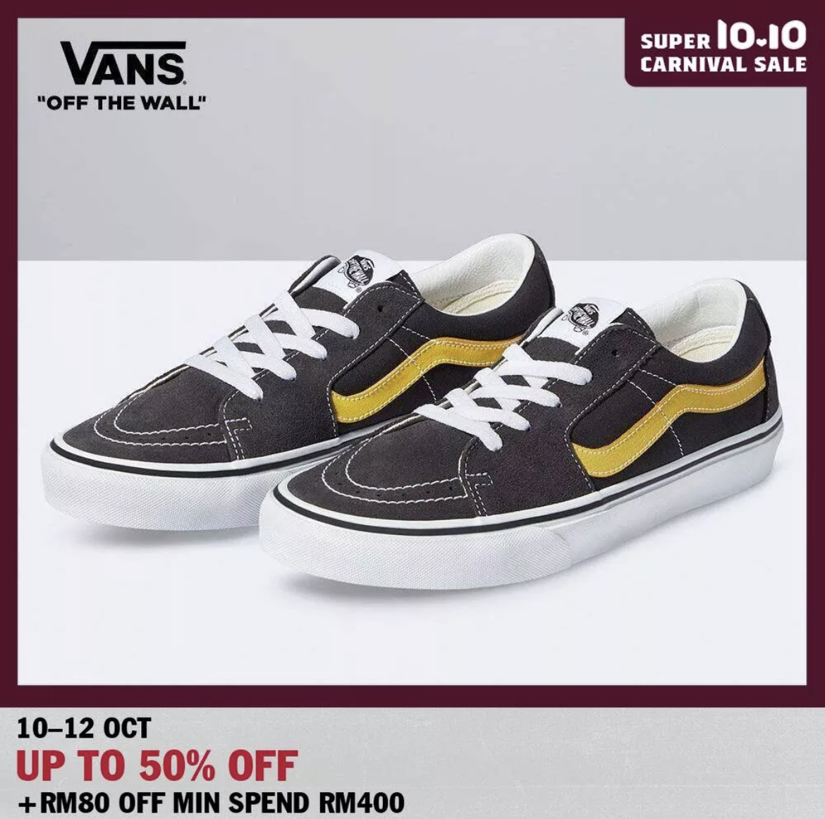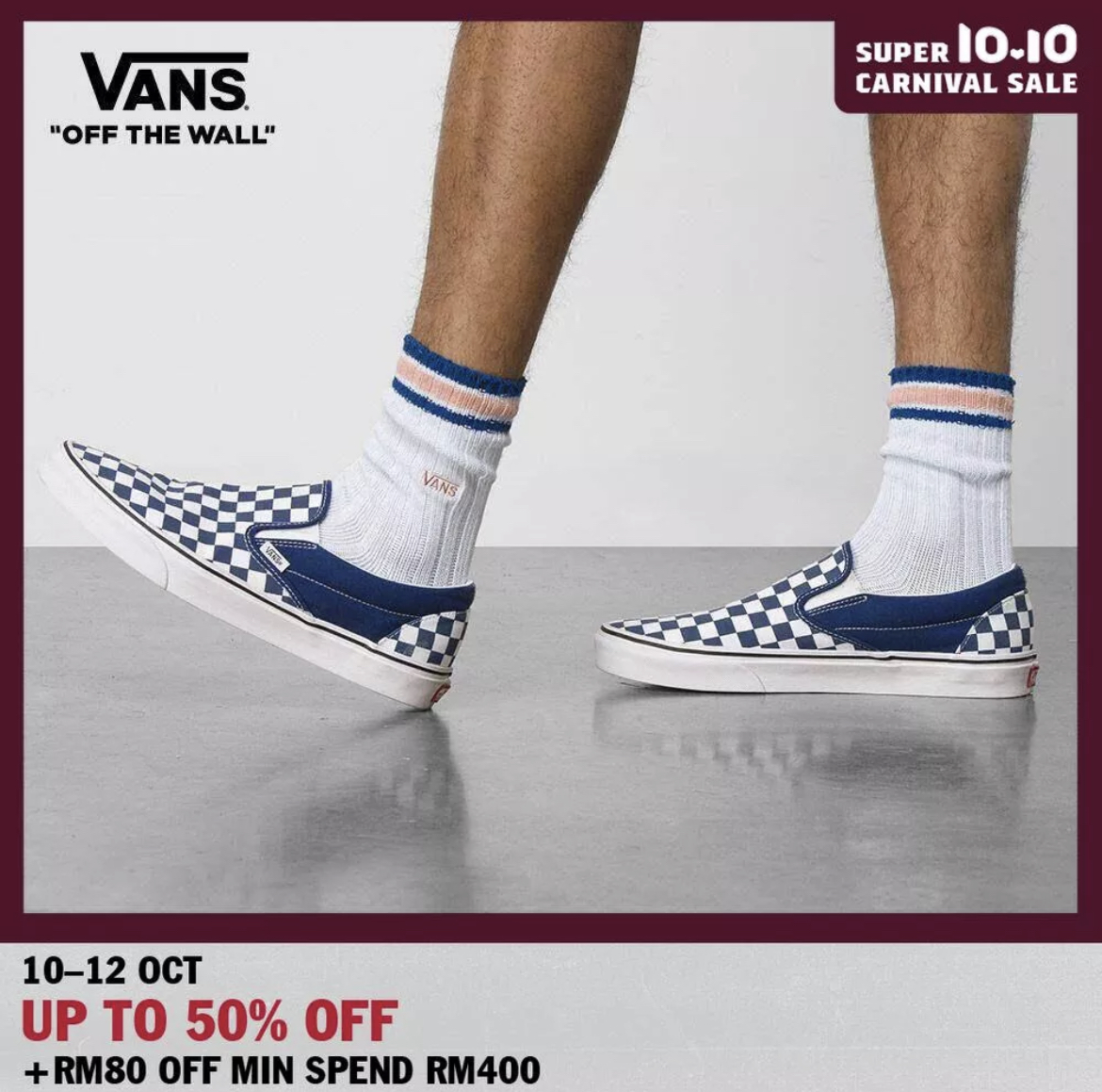 促销活动:Vans x LazMall 10.10 折扣高达50% + 消费满RM400折扣RM80