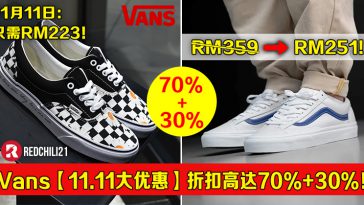促销活动:Vans x LazMall 10.10 折扣高达50% + 消费满RM400折扣RM80