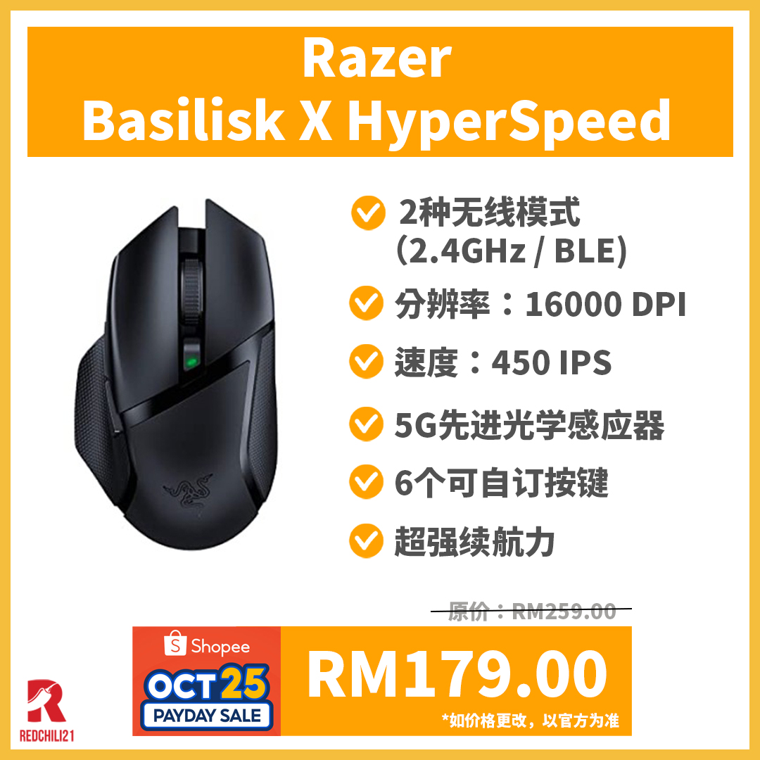 ▪ ③ Razer Basilisk X HyperSpeed Dual-Mode 无线游戏鼠标