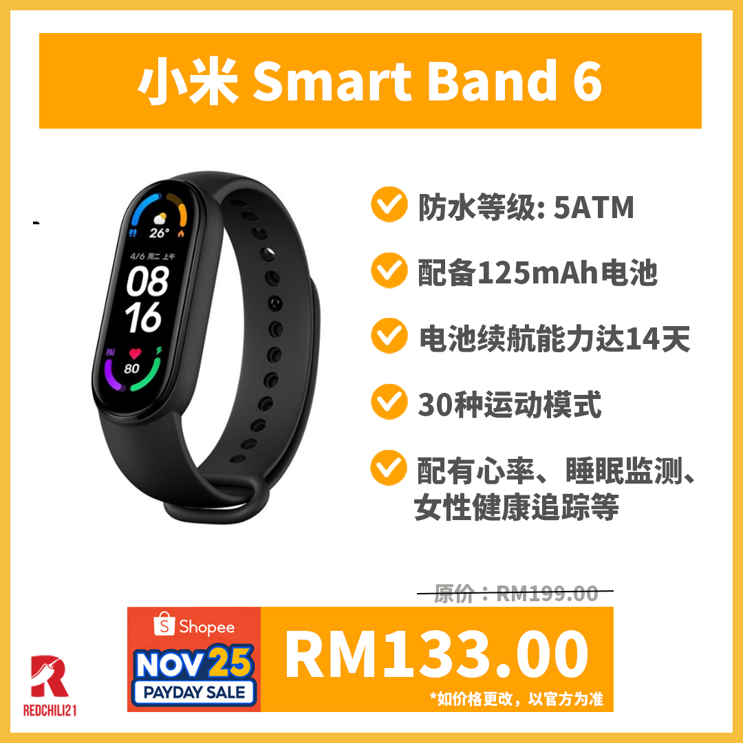 ▪ ⑤ Xiaomi Mi Band 6 Smart Wristband 智能手表