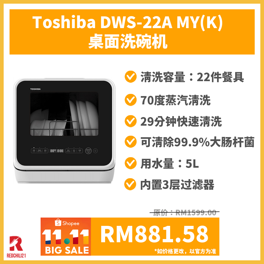 ▪ ② Toshiba DWS-22A MY(K) 迷你桌面洗碗机