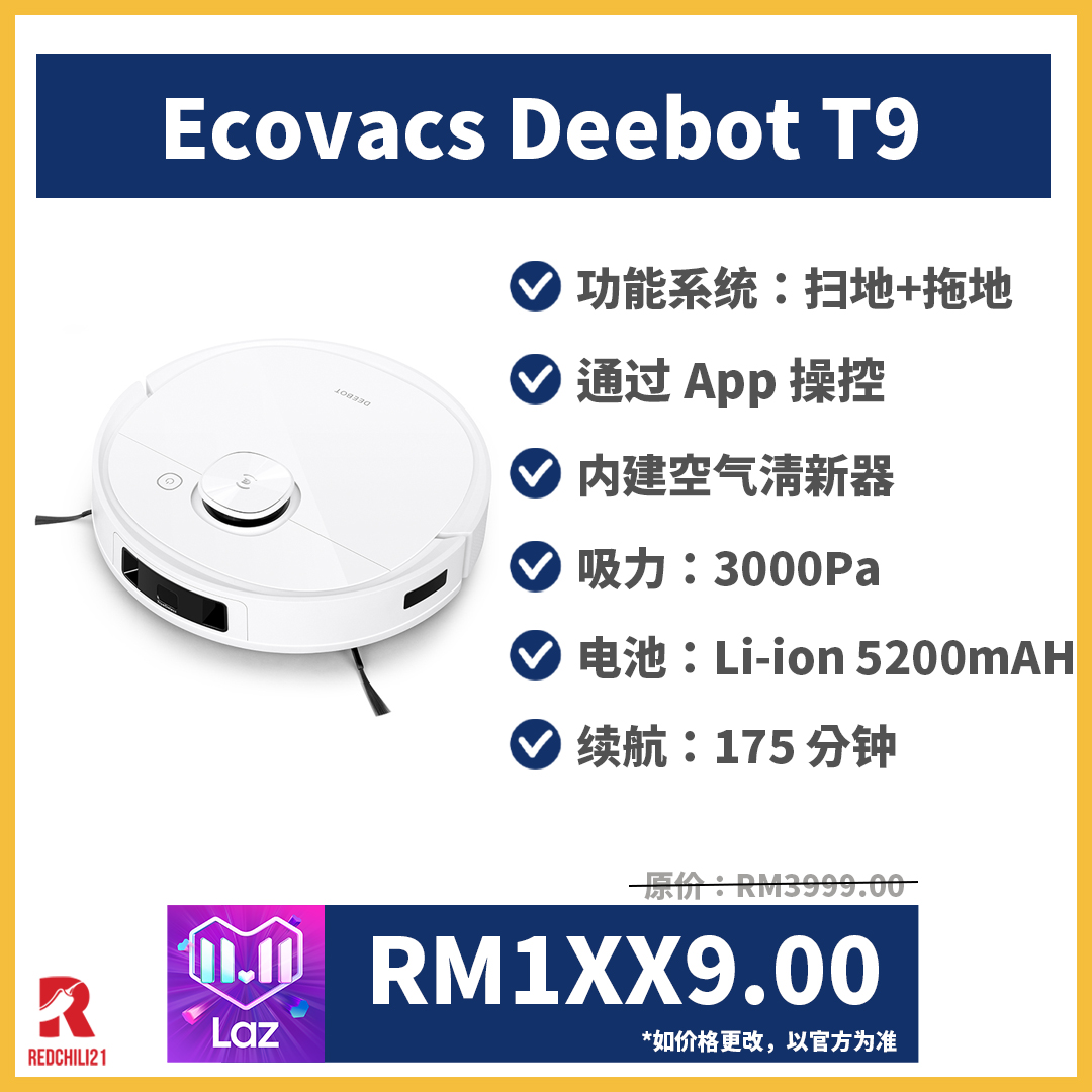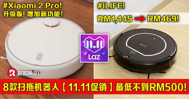 接下来就为大家推荐销量超高的8款扫地+拖地机器人,趁着这次 Lazada 11.11大促销购买,可享更多折扣优惠哦!