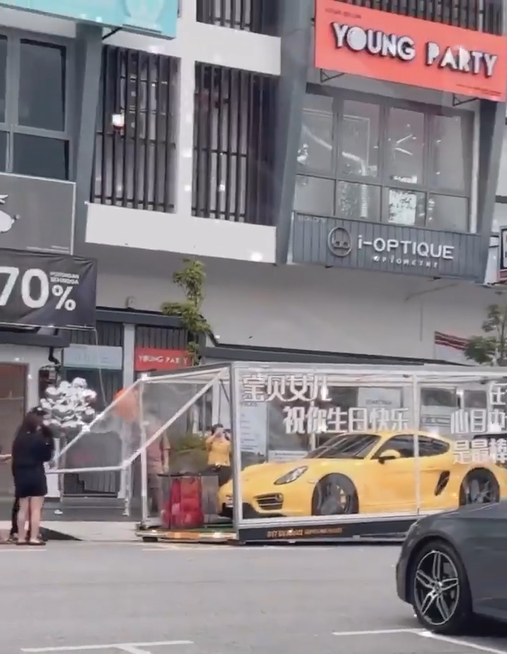 ▼ 生日礼物不仅准备了价值6位数的全新保时捷(Porsche)跑车,还精心设计了一个透明车厢!仪式感拉满!太有爱了~~~
