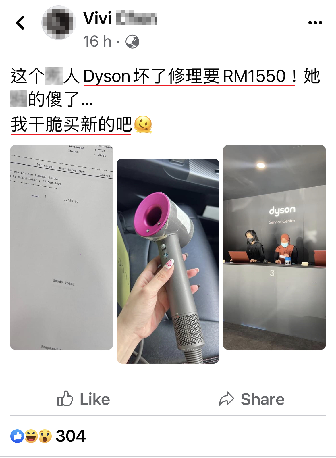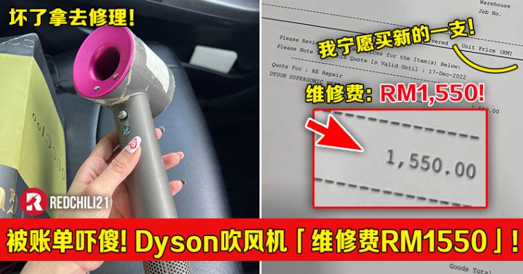 被账单吓傻!Dyson吹风机「维修费竟要RM1550」!大马事主:这个价钱我宁愿买新的一支!