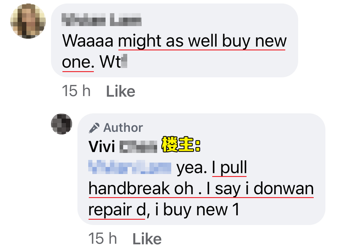 ▼ 事主最后决定不修了:「我买新的一支好了!」