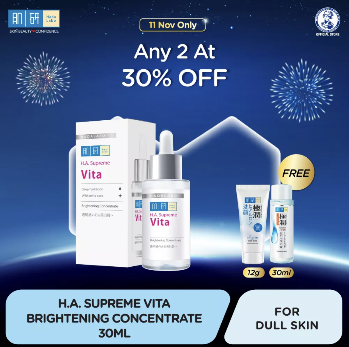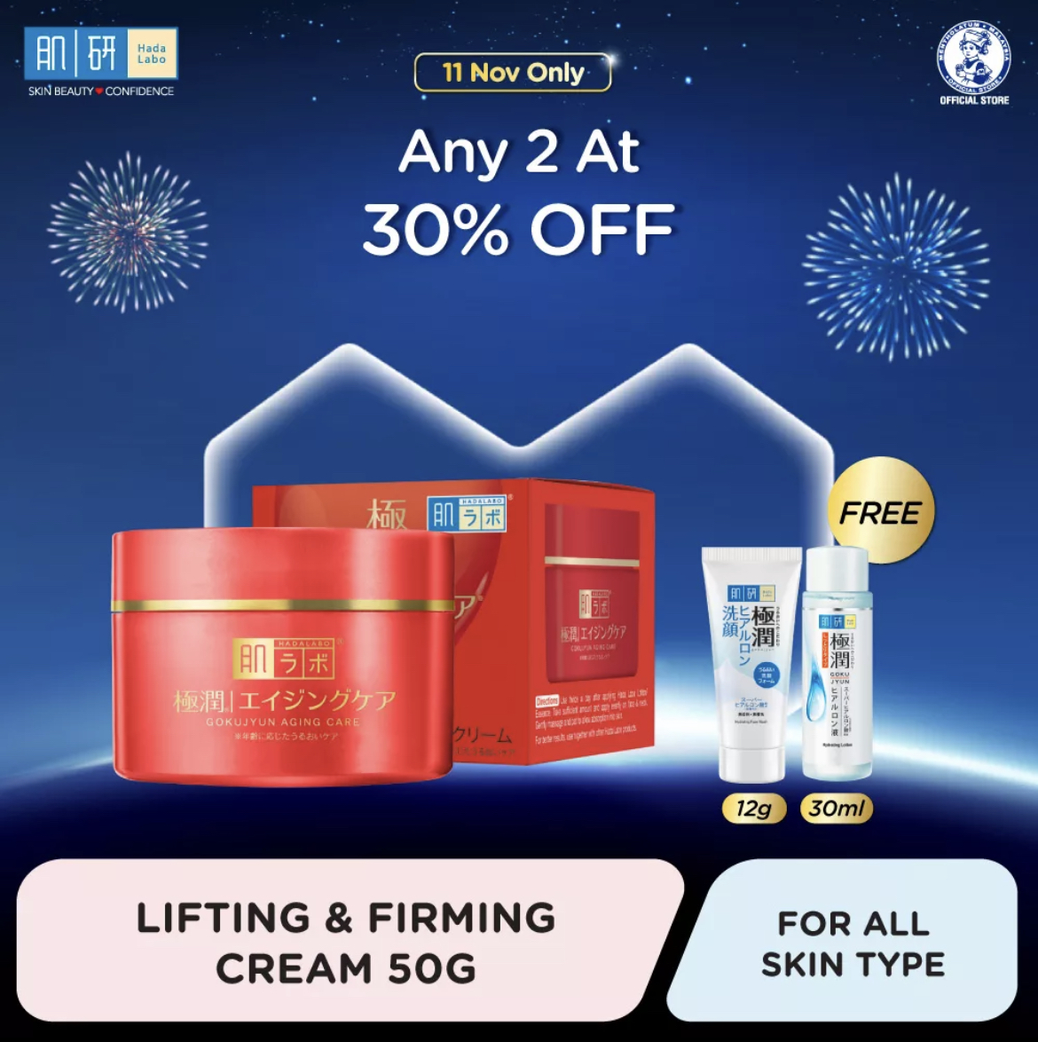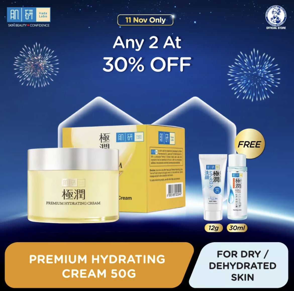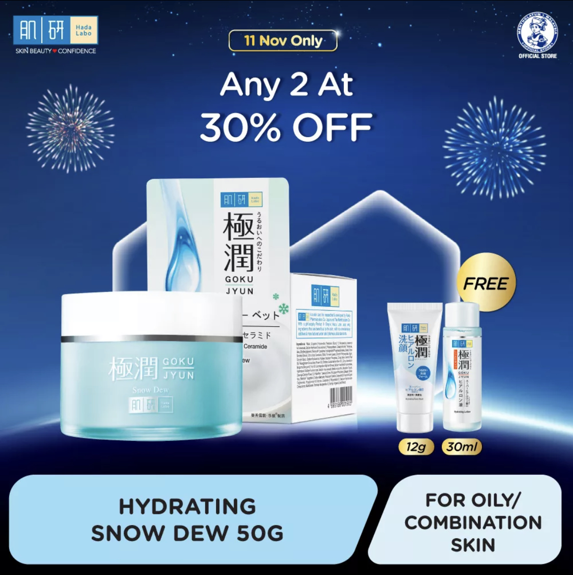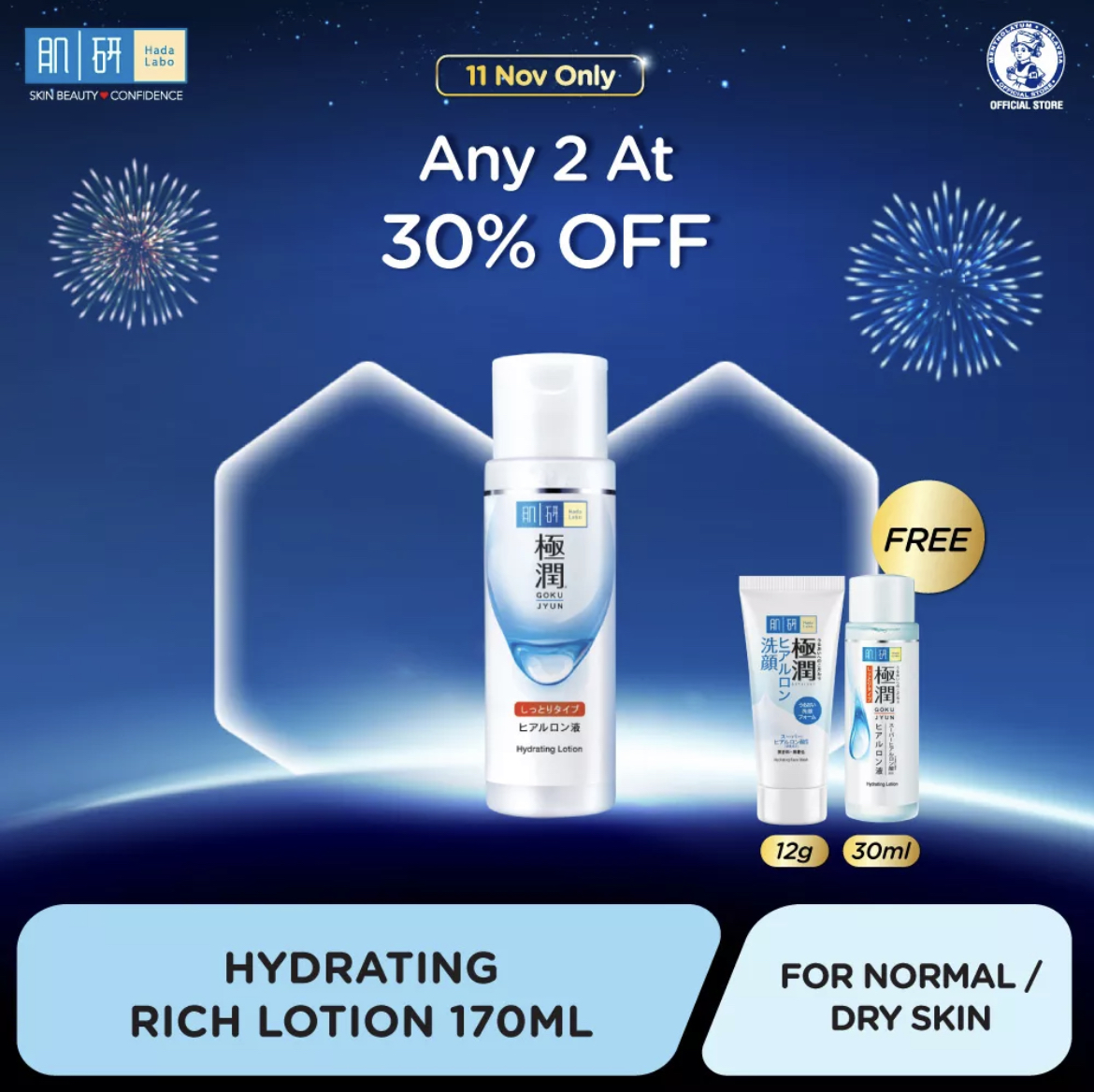 11月11日当天,Hada Labo 多款护肤品除了折扣高达51%,还送出价值高达RM128的赠品!有买就有送,买越多折扣越多!