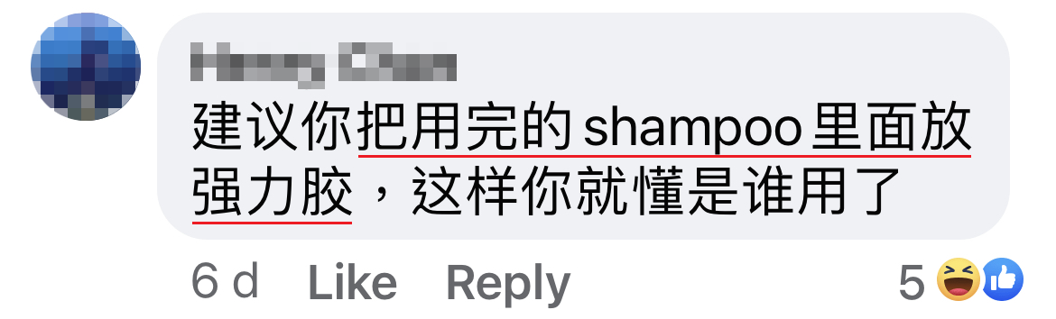 Shampoo 拿我的,洗衣液用完了也是拿我的,面也是吃我的,酒也是喝掉我半瓶,没有人要承认,我都算了。