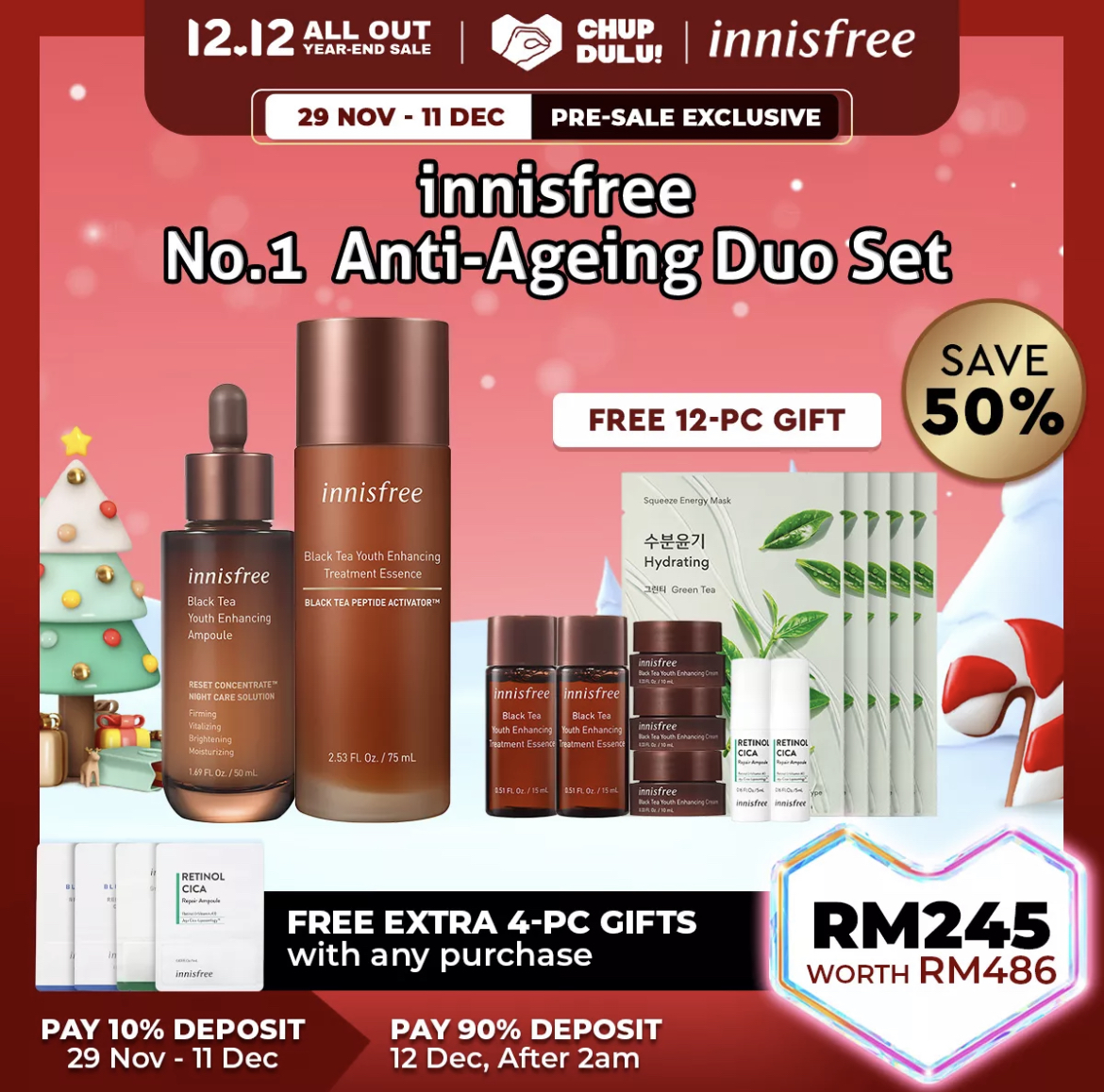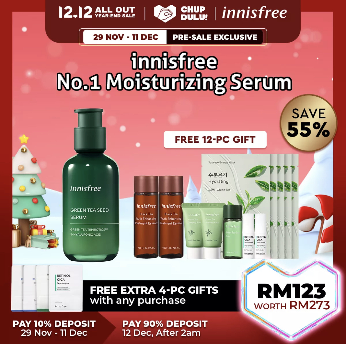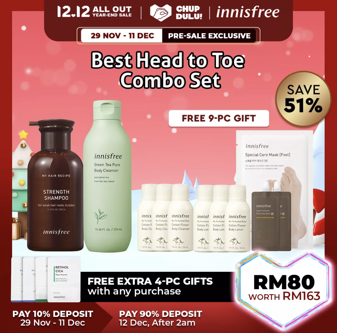 Innisfree 的粉丝们,看过来咯~配合即将到来的12.12购物节,Innisfree x LazMall 官方网店即日起举办预购优惠(Pre-sale),多款护肤品套装节省高达59%!
