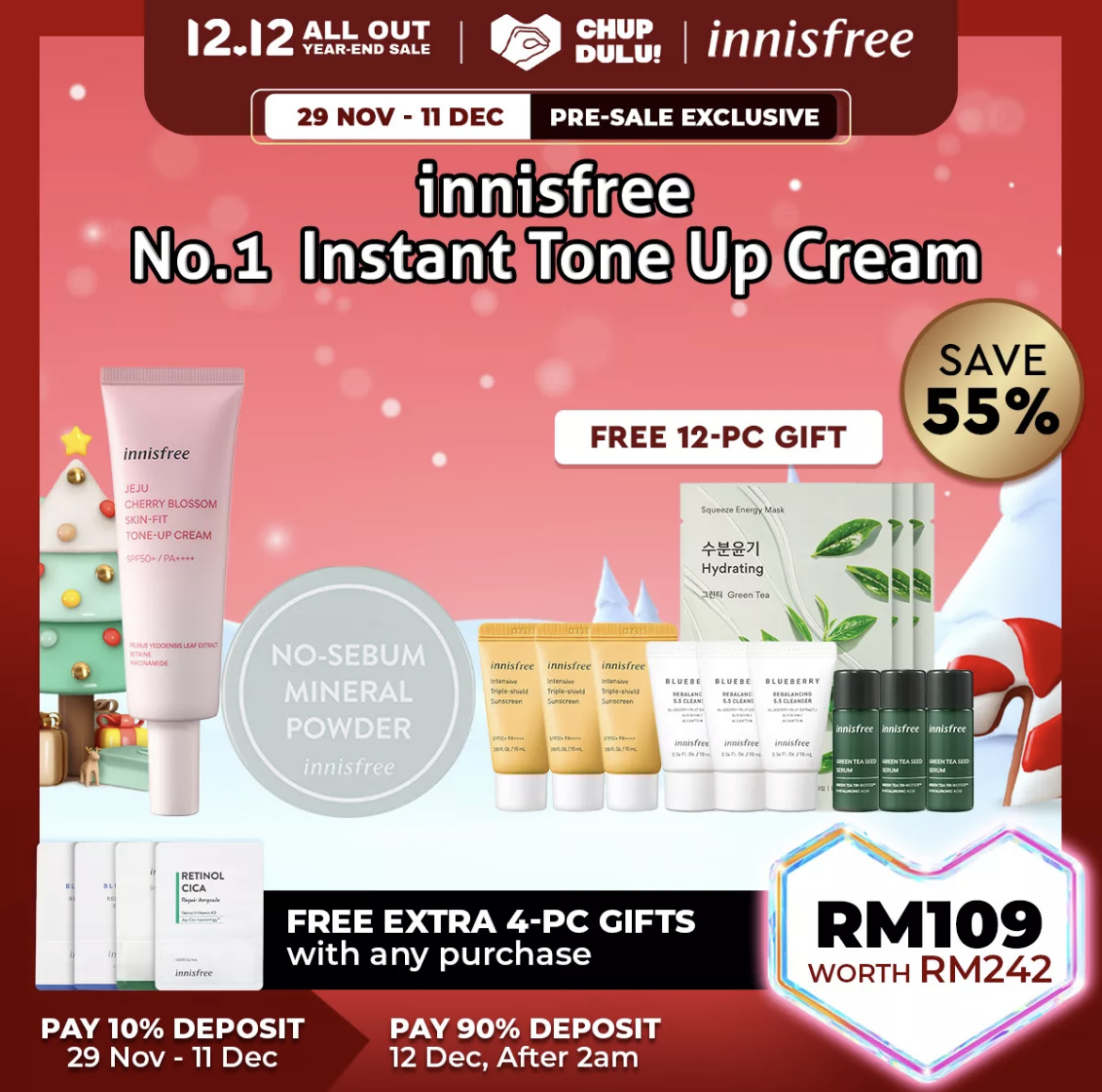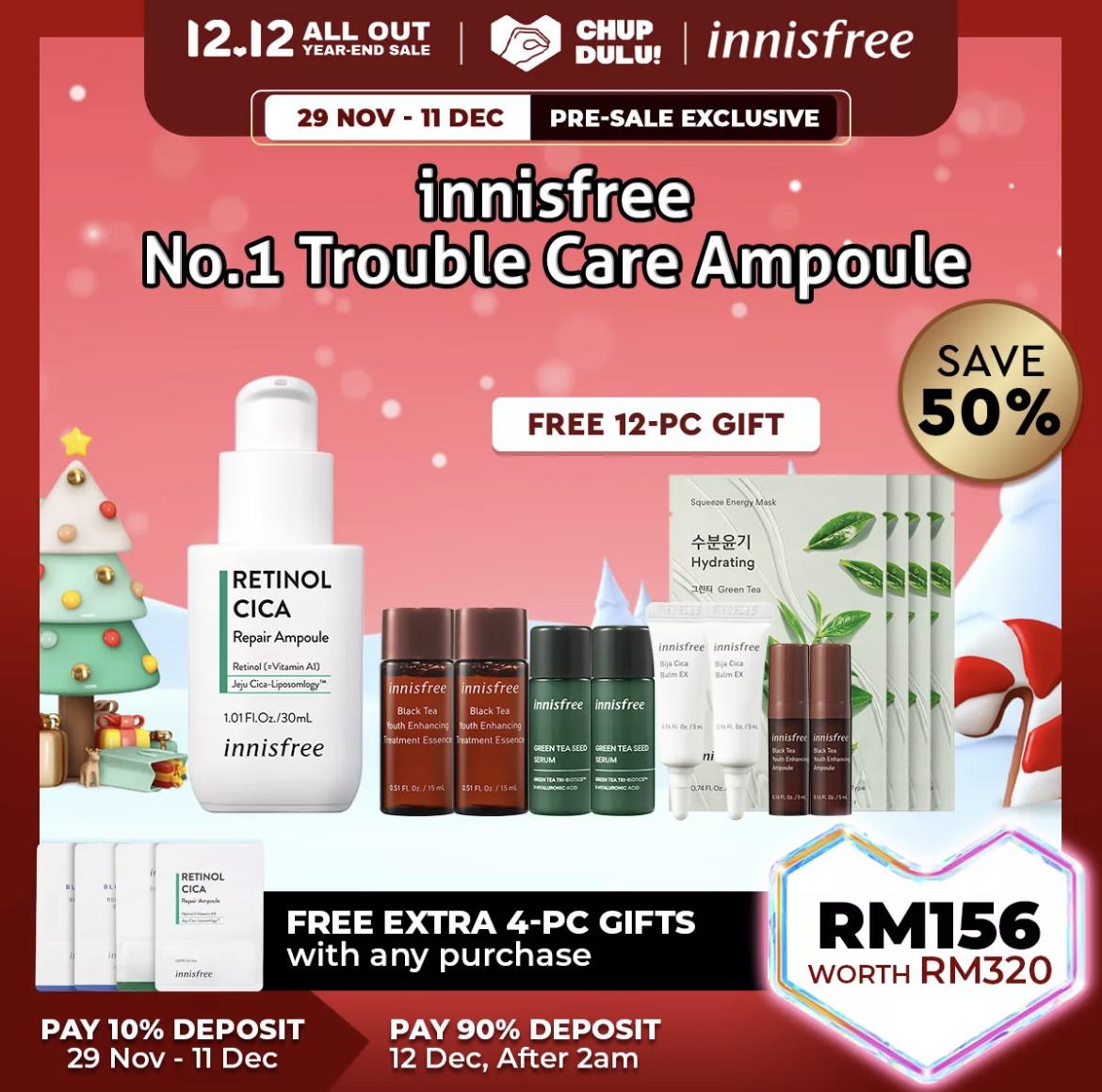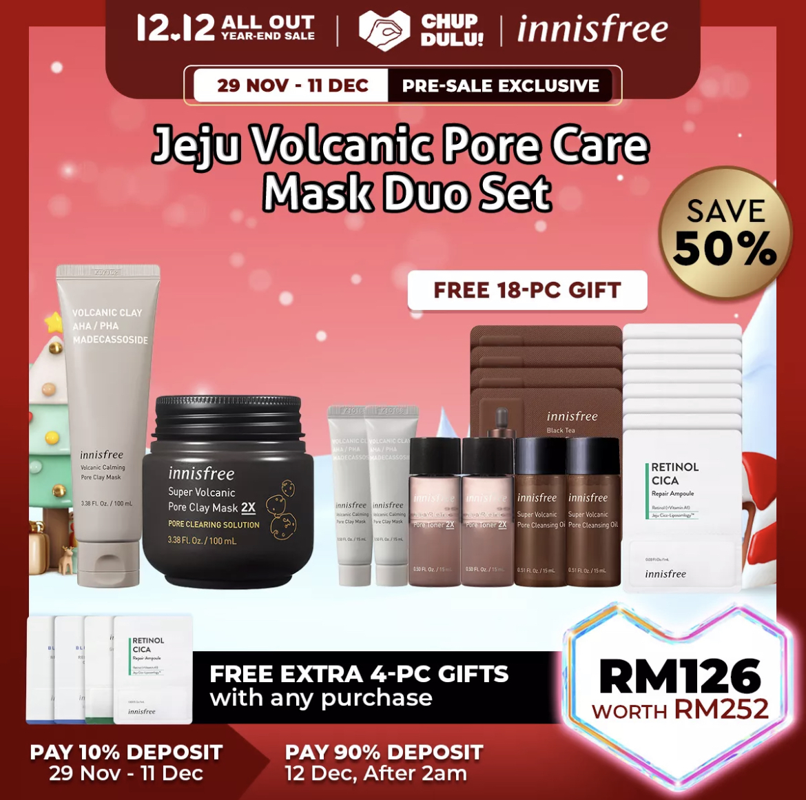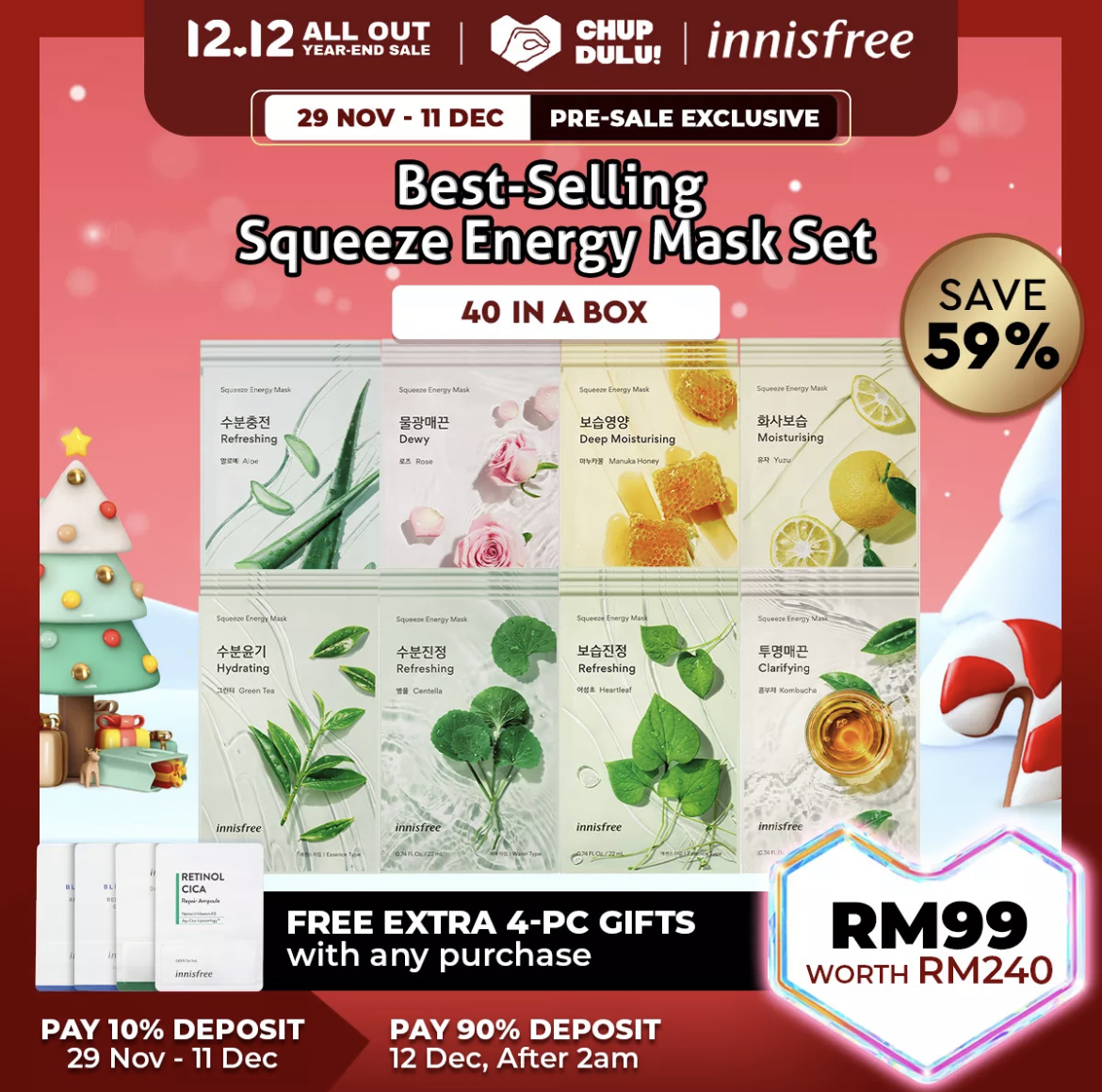 Innisfree 的粉丝们,看过来咯~配合即将到来的12.12购物节,Innisfree x LazMall 官方网店即日起举办预购优惠(Pre-sale),多款护肤品套装节省高达59%!
