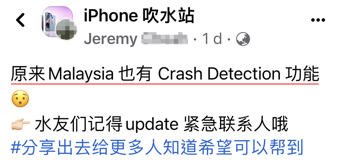 就比如车祸侦测功能,大马苹果粉发生车祸后才知道,原来在马来西亚也用得上!