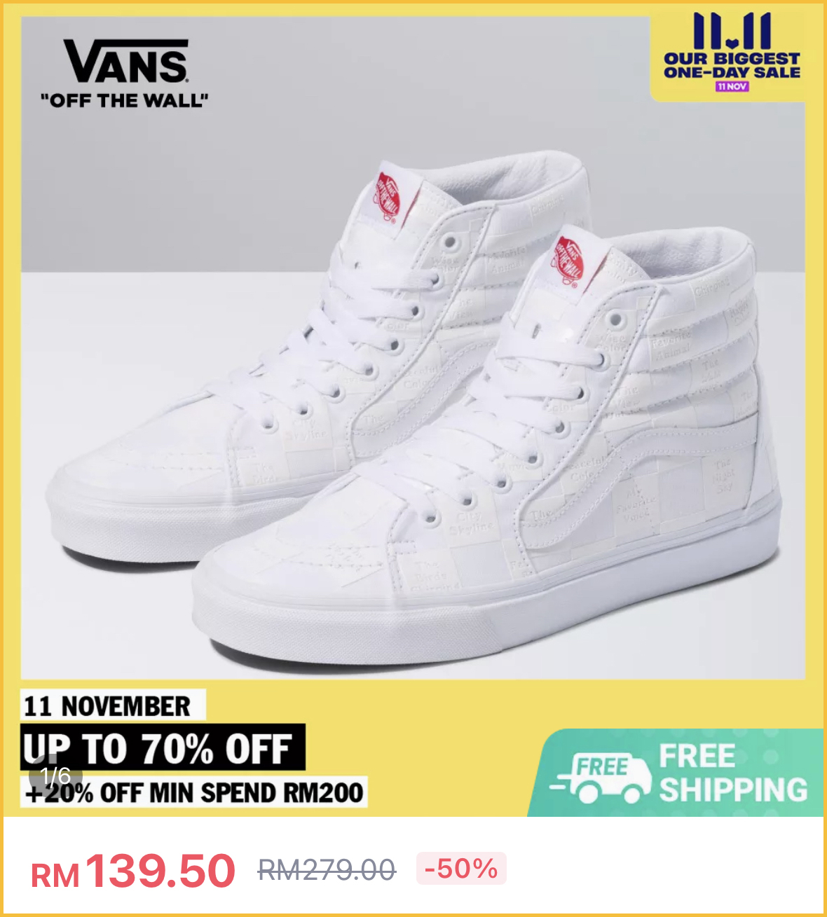 促销网站:Vans x Lazada 旗舰店【点击这里】