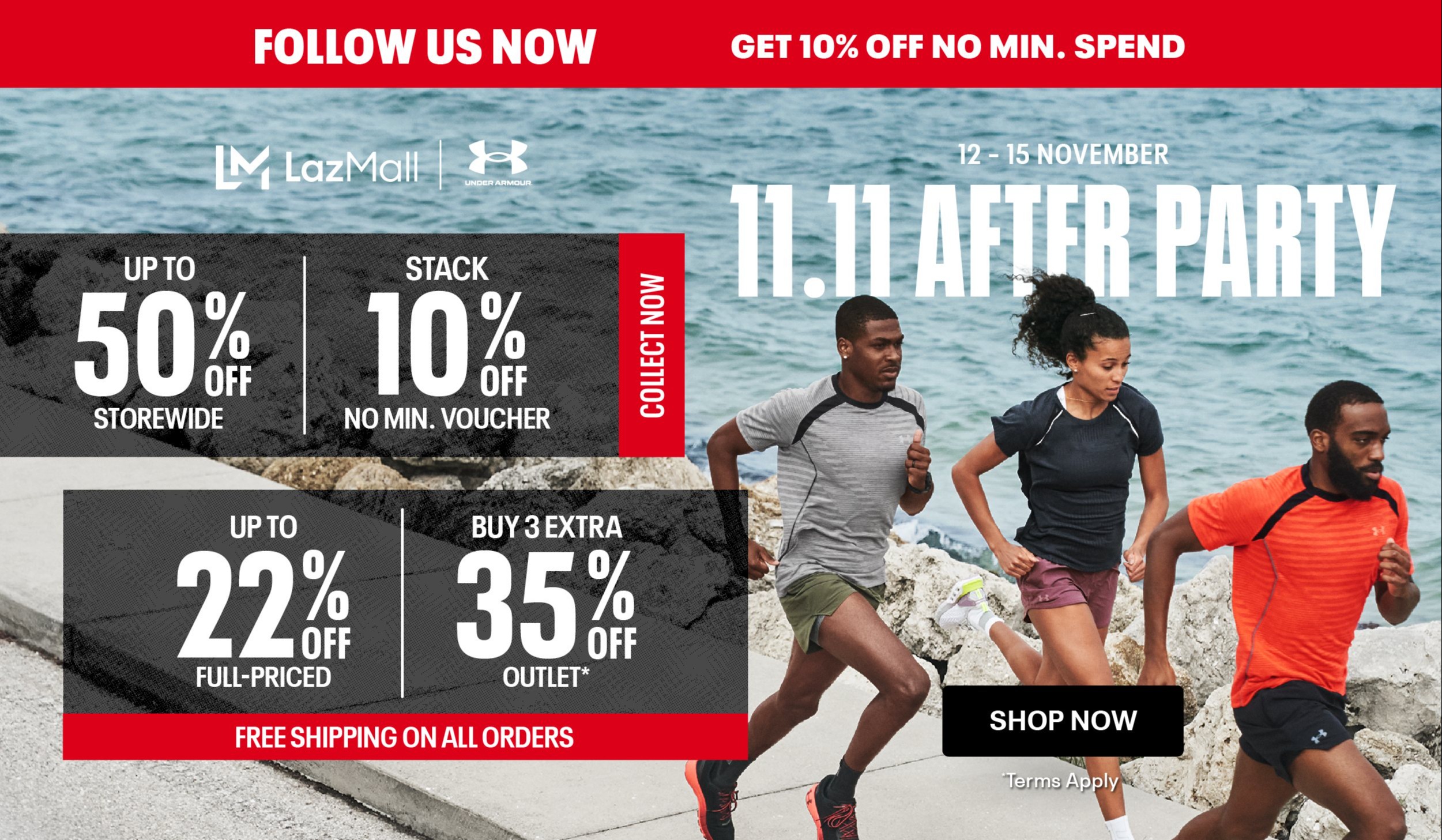 Lazada 即日起至14日举办 11.11 After Party 促销活动,以下就是6大运动品牌这三天的最新优惠,折扣高达50%,买越多就可以获得更多额外折扣!