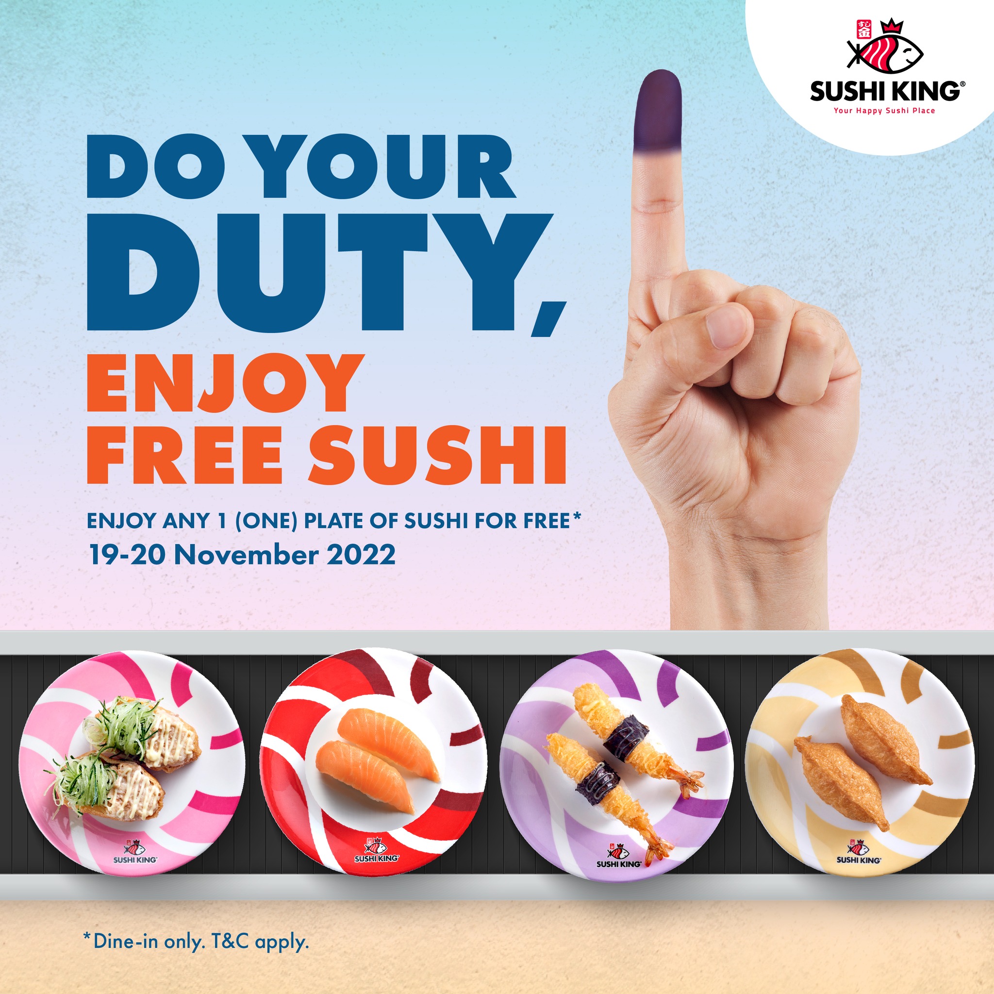 促销活动:Sushi King 投票日优惠 – 免费获得一盘寿司