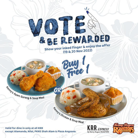 促销活动:Kenny Rogers ROASTERS 投票日优惠 – 买一送一