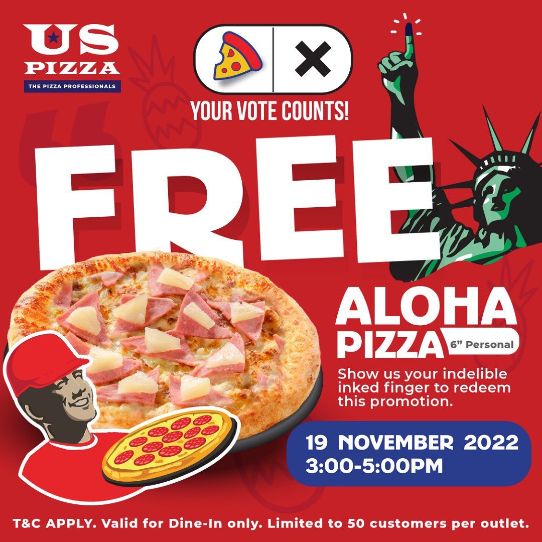 促销活动:US Pizza 投票日优惠 – 免费获得一份 6″ Personal Aloha Pizza