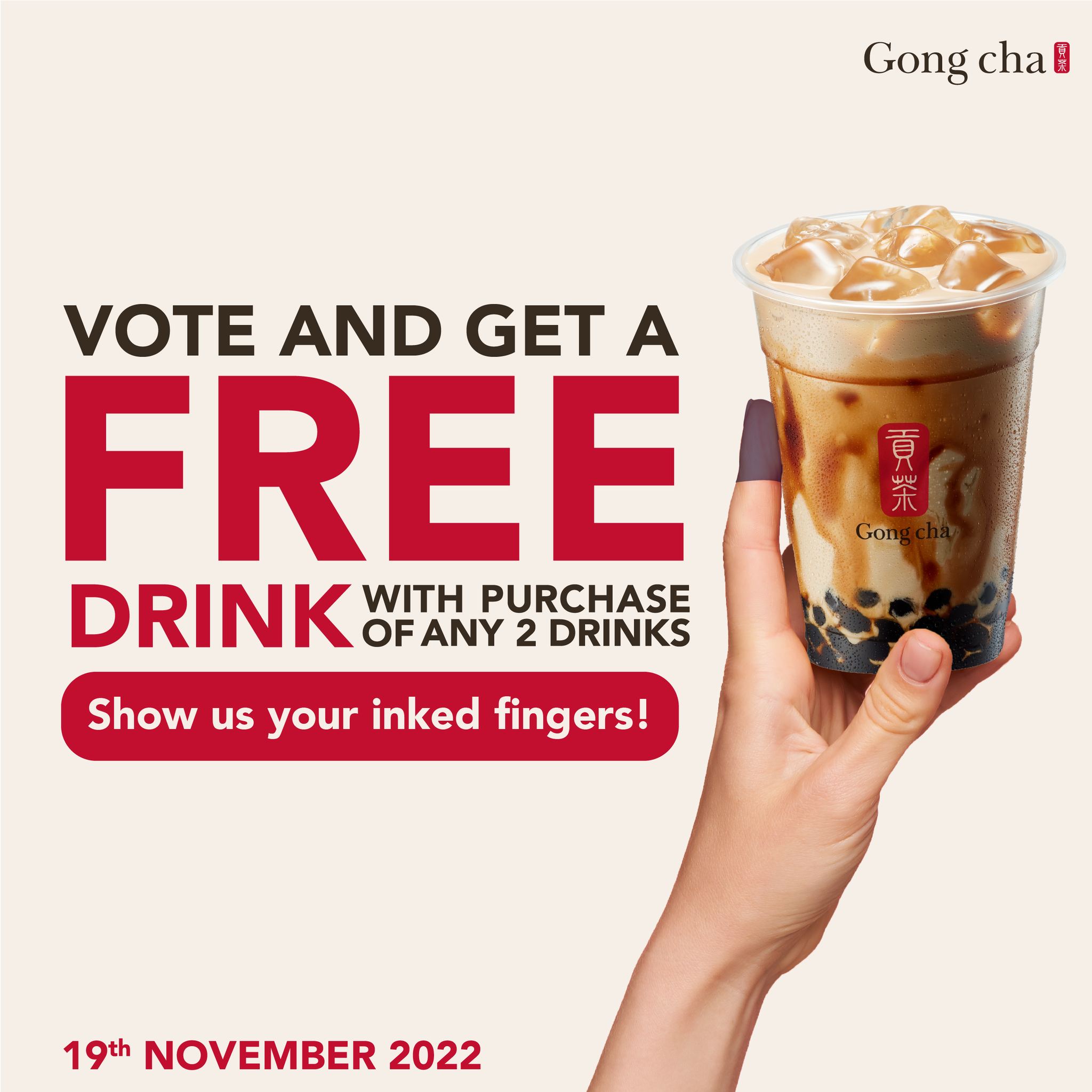 促销活动:Gong Cha 投票日优惠 – 饮料买2送1
