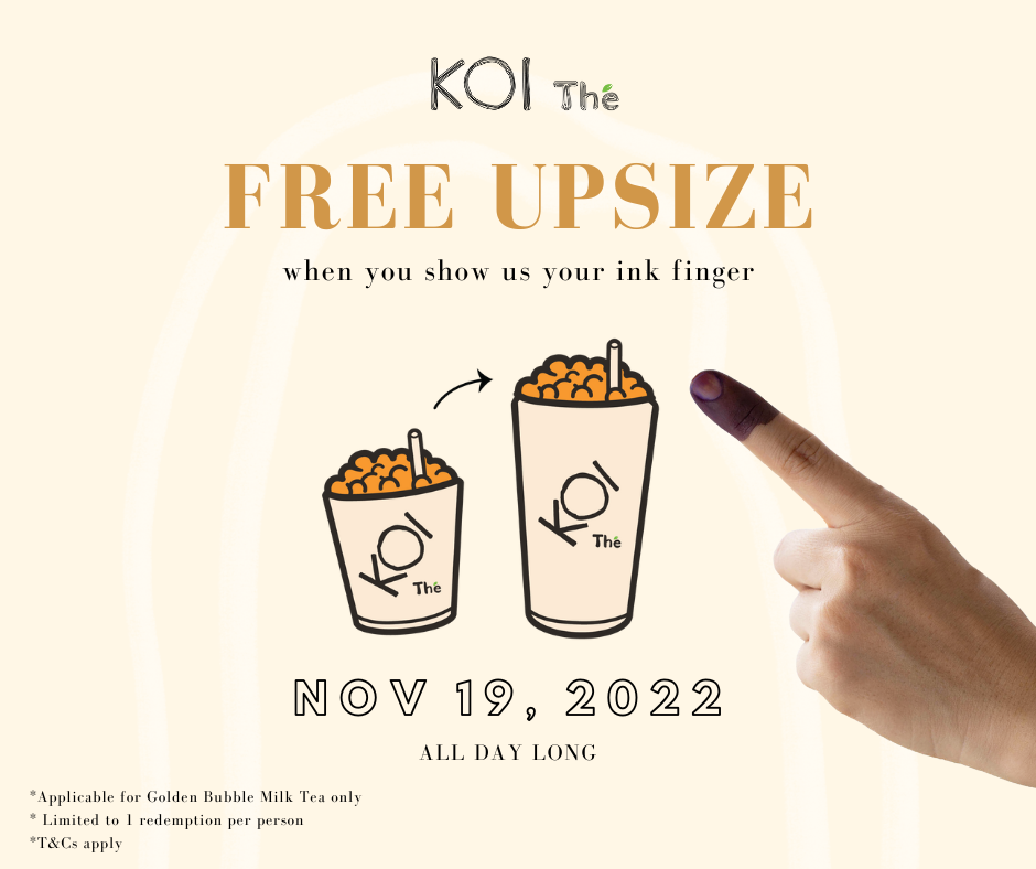 促销活动:KOI Thé 投票日优惠 – 免费升大杯