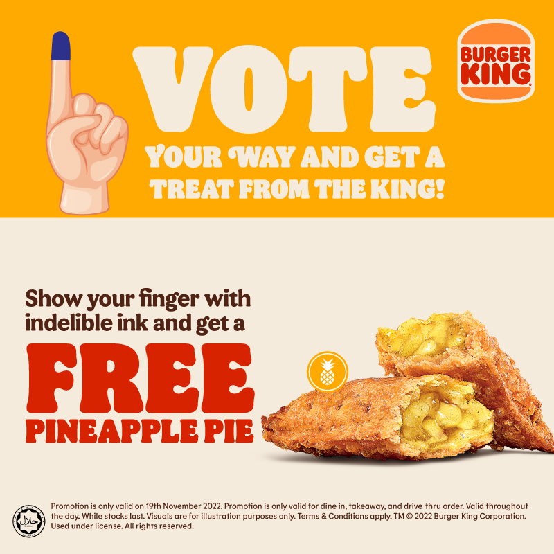 促销活动:Burger King 投票日优惠 – 免费获得一份 Pineapple Pie