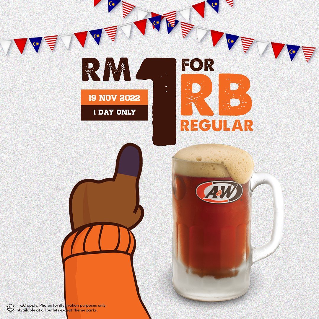 促销活动:A&W 投票日优惠 – Root Beer 只需RM1