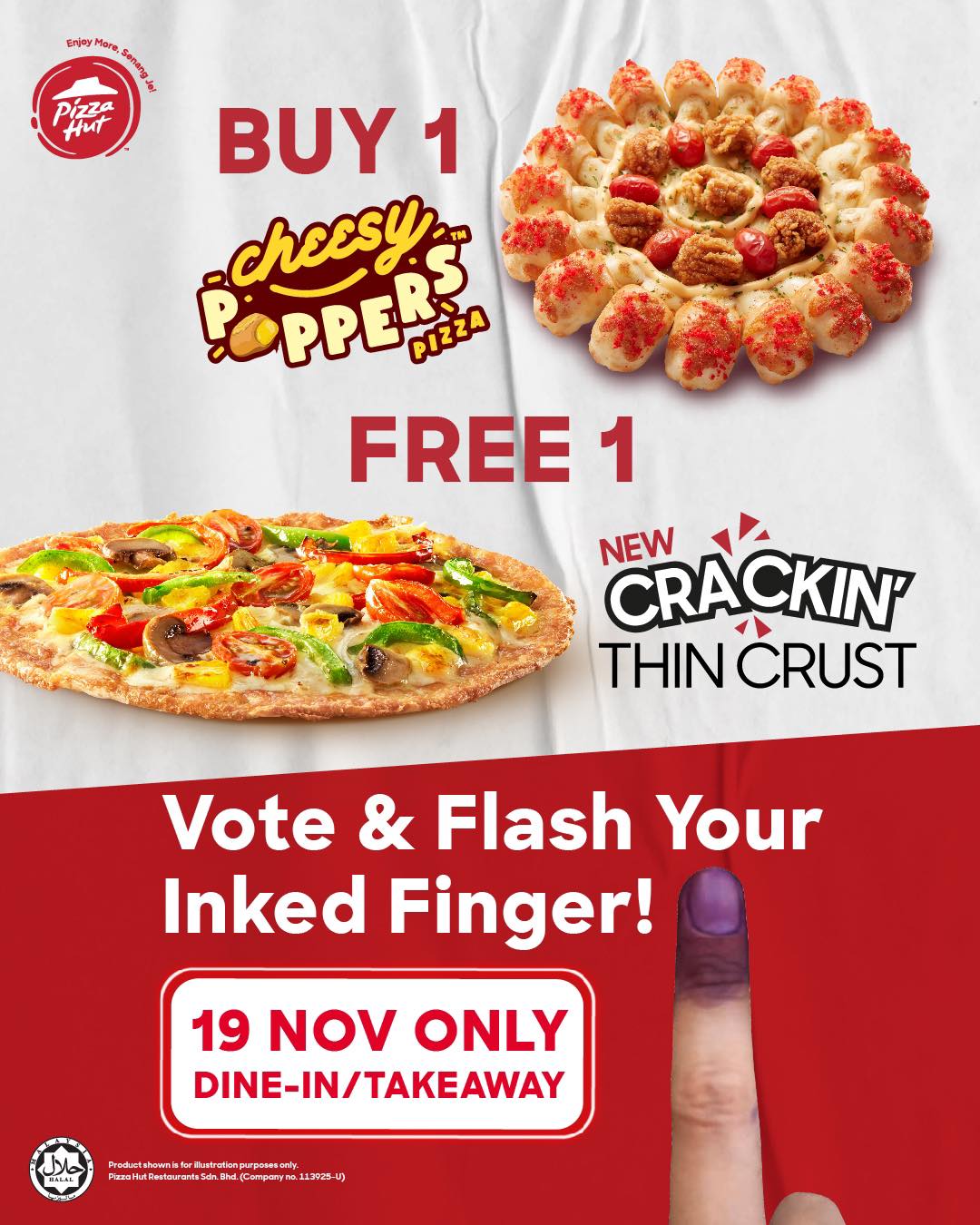 促销活动:Pizza Hut 投票日优惠 – 指定披萨买一送一