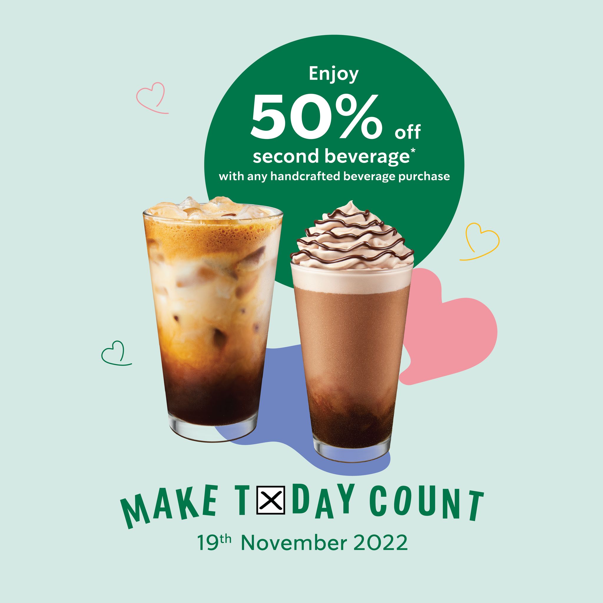 促销活动:Starbucks 投票日优惠 – 购买第二杯50%折扣