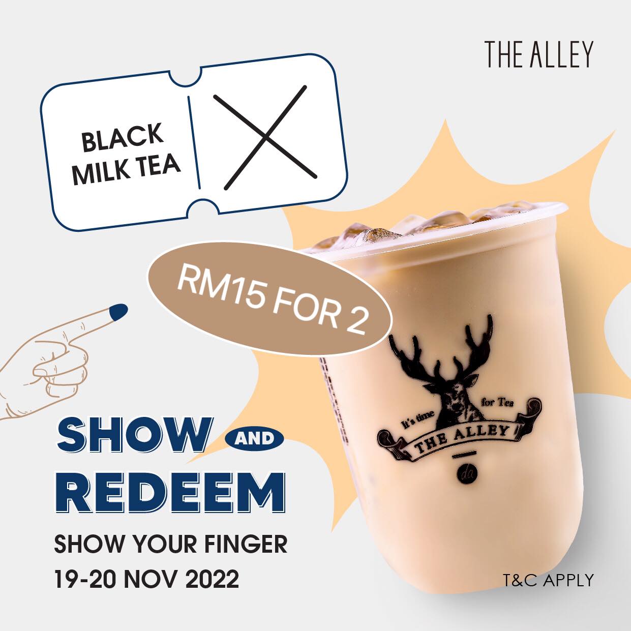 促销活动:The Alley 投票日优惠 – 2杯 Black Milk Tea 只需RM15