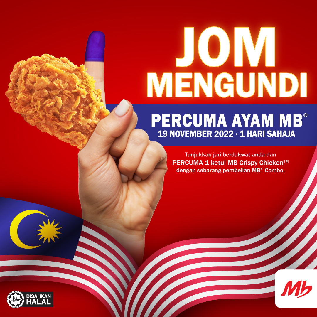 促销活动:Marrybrown 投票日优惠 – 购买一份 Combo 套餐,免费获取1块炸鸡