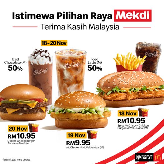 促销活动:McDonald’s 投票日优惠 – 汉堡套餐折扣价,饮料50%折扣