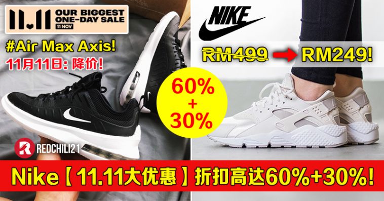 这次 Lazada 11.11购物节,千万不能错过 Nike 官方网店的特价大促销!不仅折扣高达60%,满4件再额外扣30%!Lazada Bonus 满RM100再扣RM10!