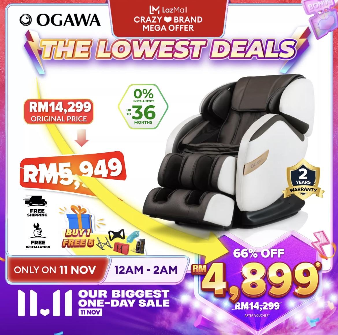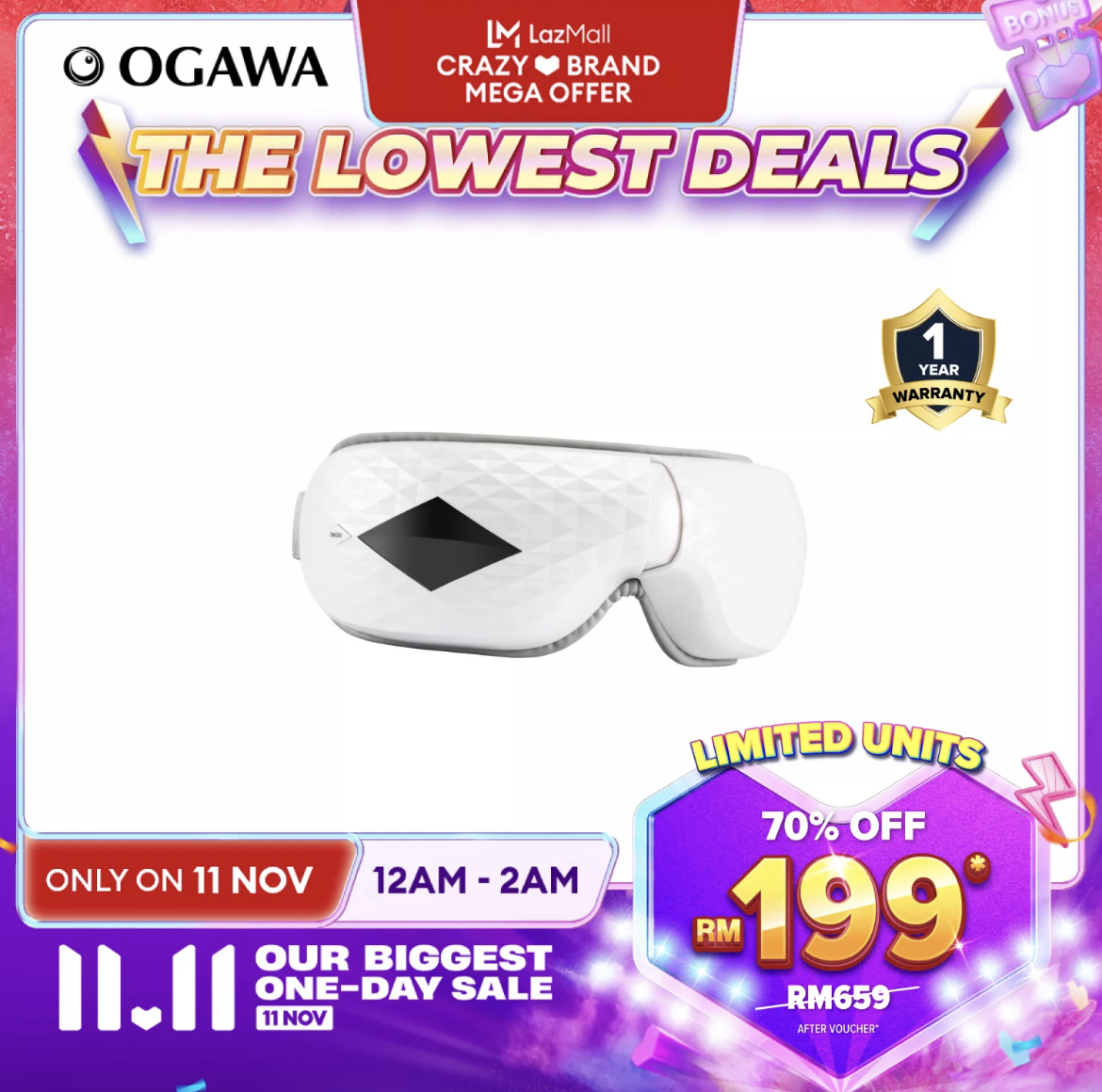 促销活动:OGAWA x LazMall 11.11 大促销 折扣高达70%