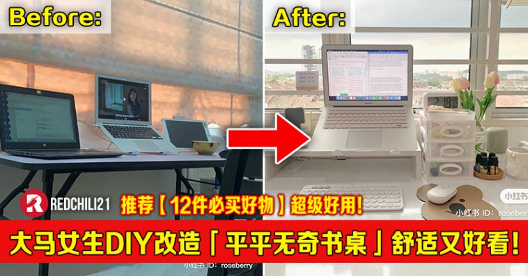 大马女大生DIY改造「平平无奇书桌」舒适又好看!推荐【12件必买好物】超级好用!
