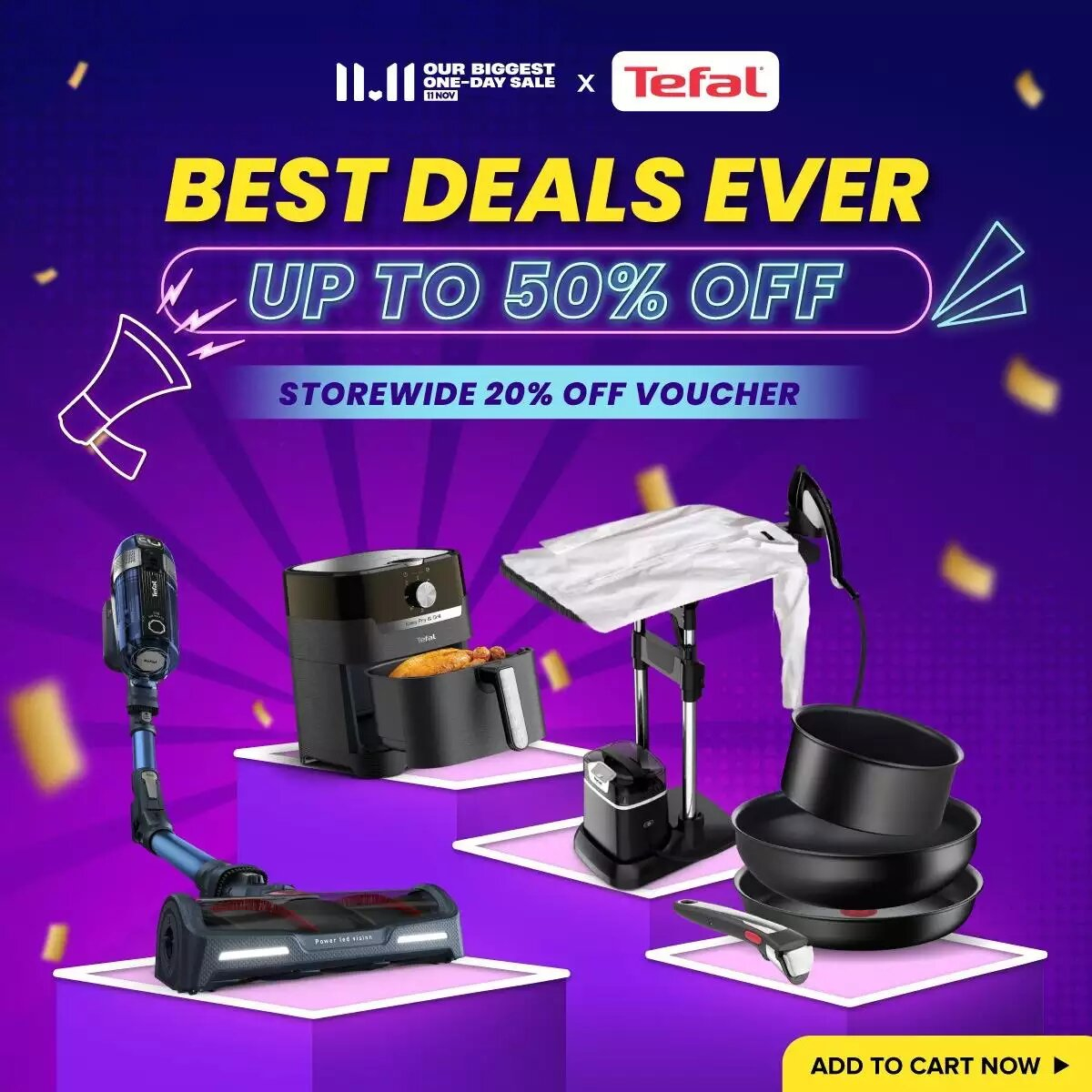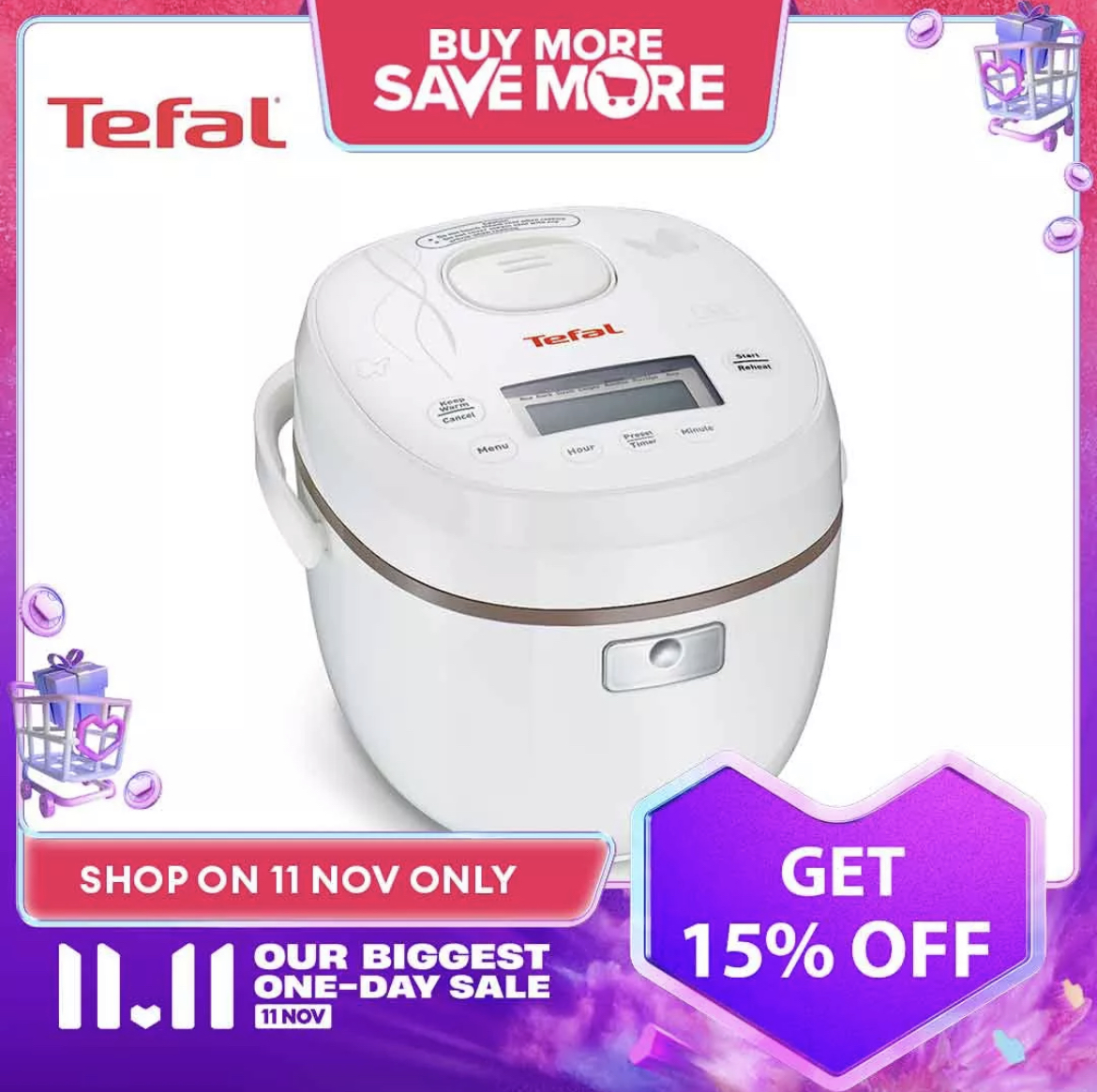 Tefal x Lazada 官方网店欢庆 11.11 大优惠,多款家电除了折扣高达50%,还有全场额外20%,最后再扣 Lazada Bonus 超值得的啦~