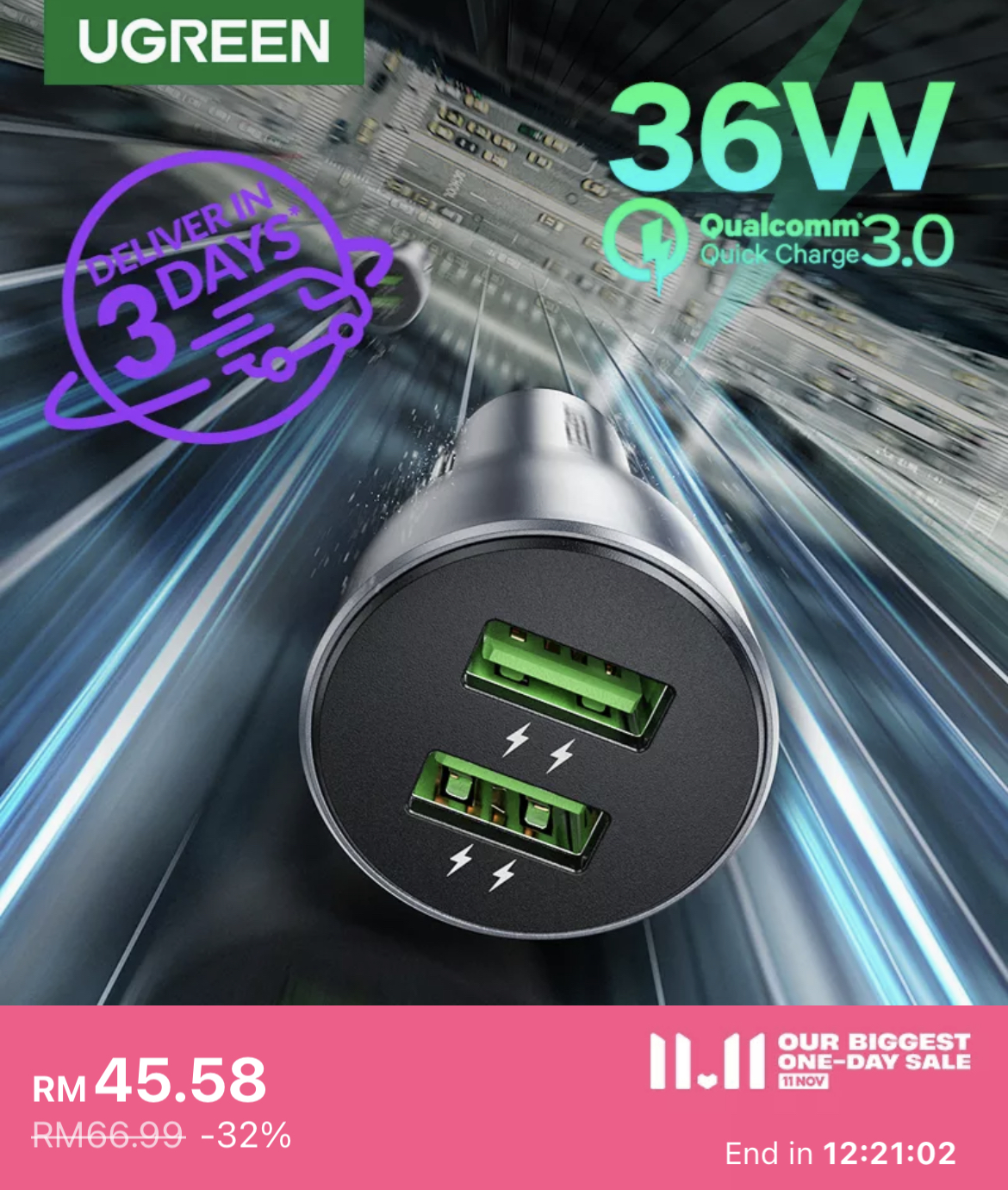 促销活动:UGREEN x LazMall 11.11 年终大促销