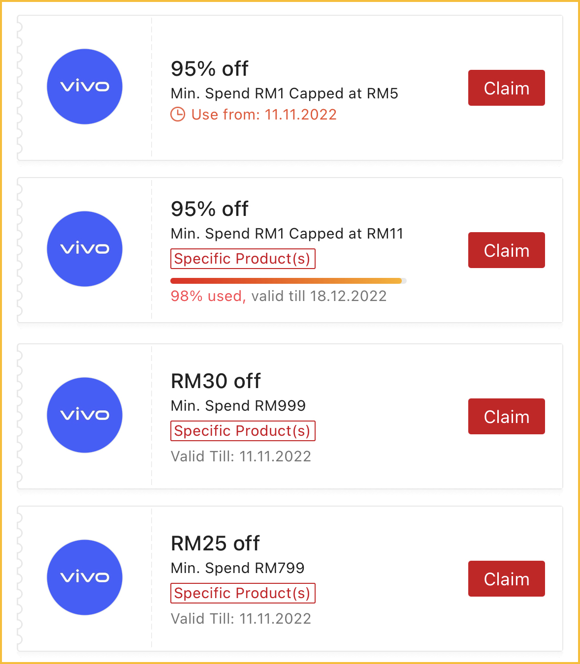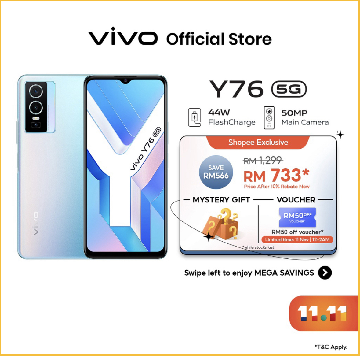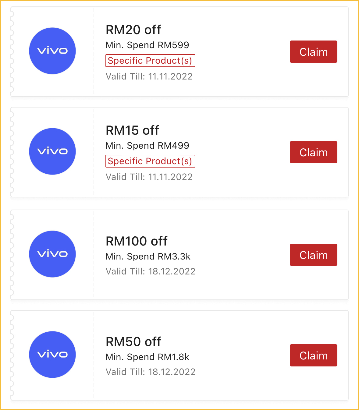 别忘了领取 vivo 店铺的折扣券,折扣高达RM100!