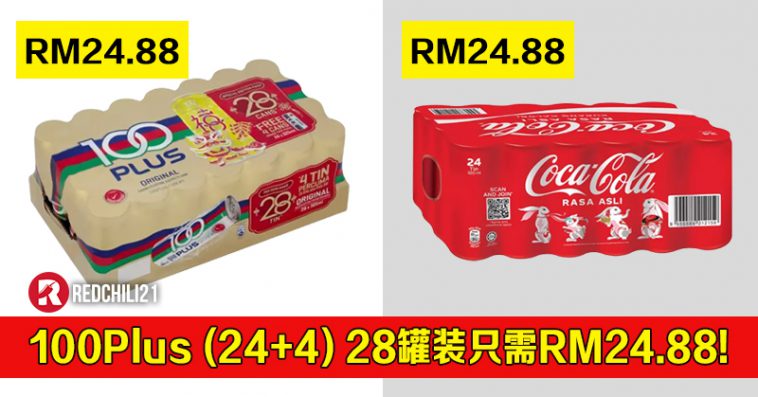 ▼那就是Econsave 里的100 Plus才RM24.88而且还是24+4罐装。1罐除起来都不到RM1.00 (目前最便宜)