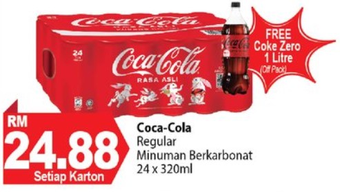 ▼除了100plus, 24罐装的Coca-cola 饮料也只需RM24.88 还附送1 Litre 的Coke Zero!