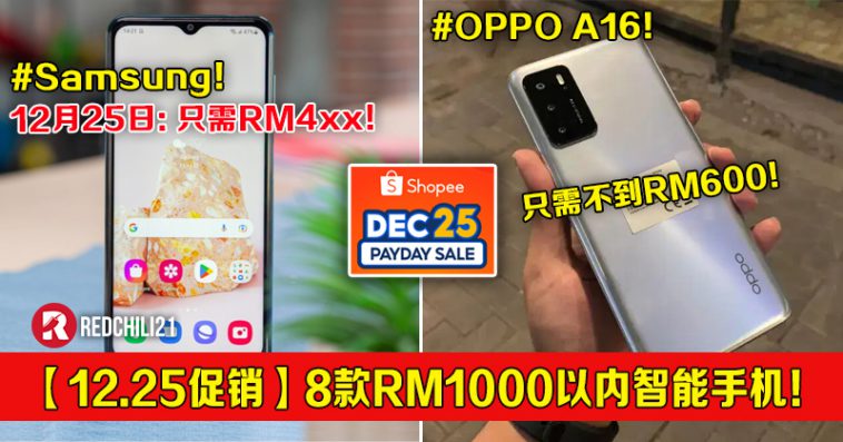 需要买一台新手机给家里的孩子或长辈但又有budget?小编今天就为大家推荐8款知名品牌RM1000以内的智能手机,这次12月25日在 Shopee 还能以更低的促销价入手哦!