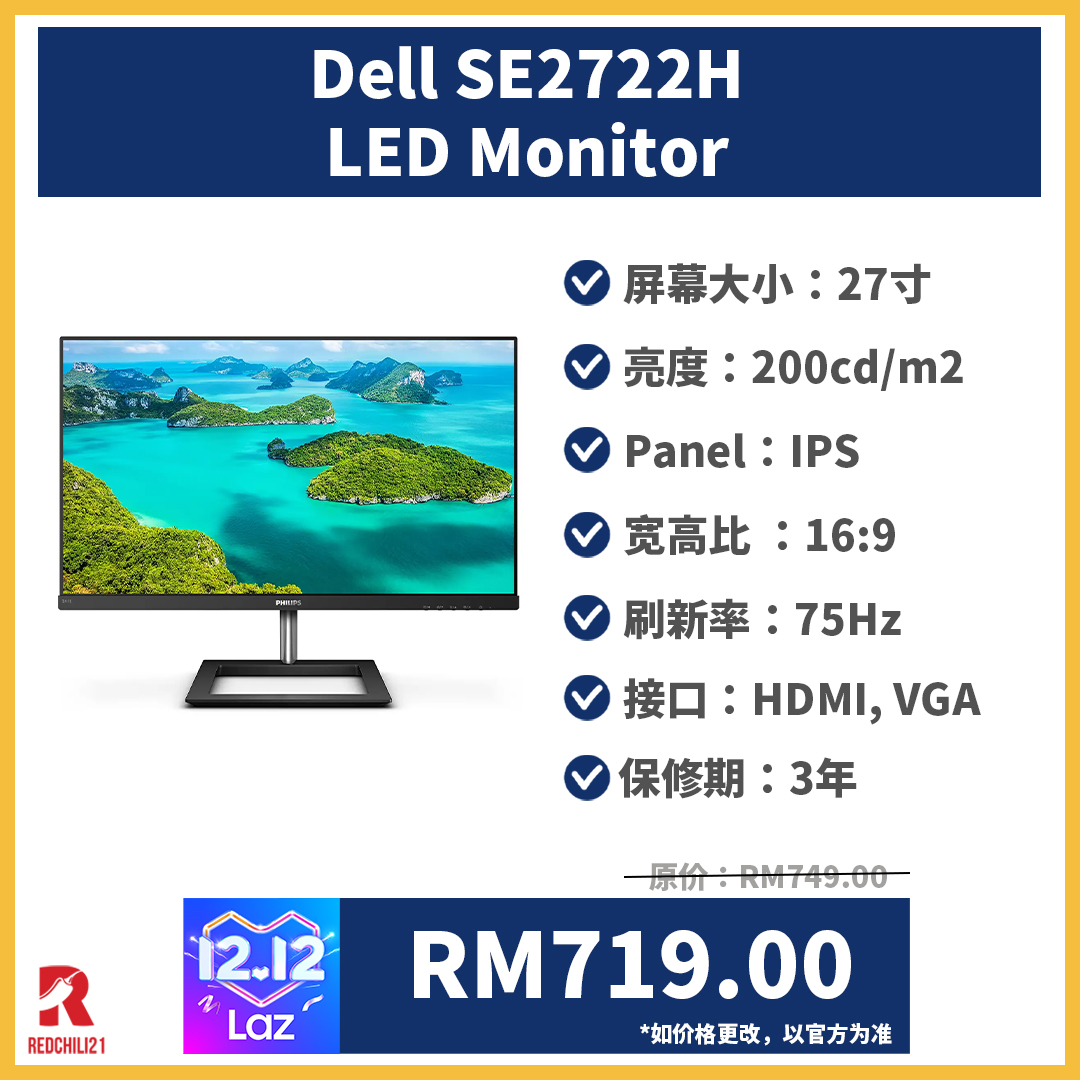 以下8款来自不同品牌的 monitor,全都是RM800以下就能买到!这次 Lazada 12.12大促销入手更便宜哦!