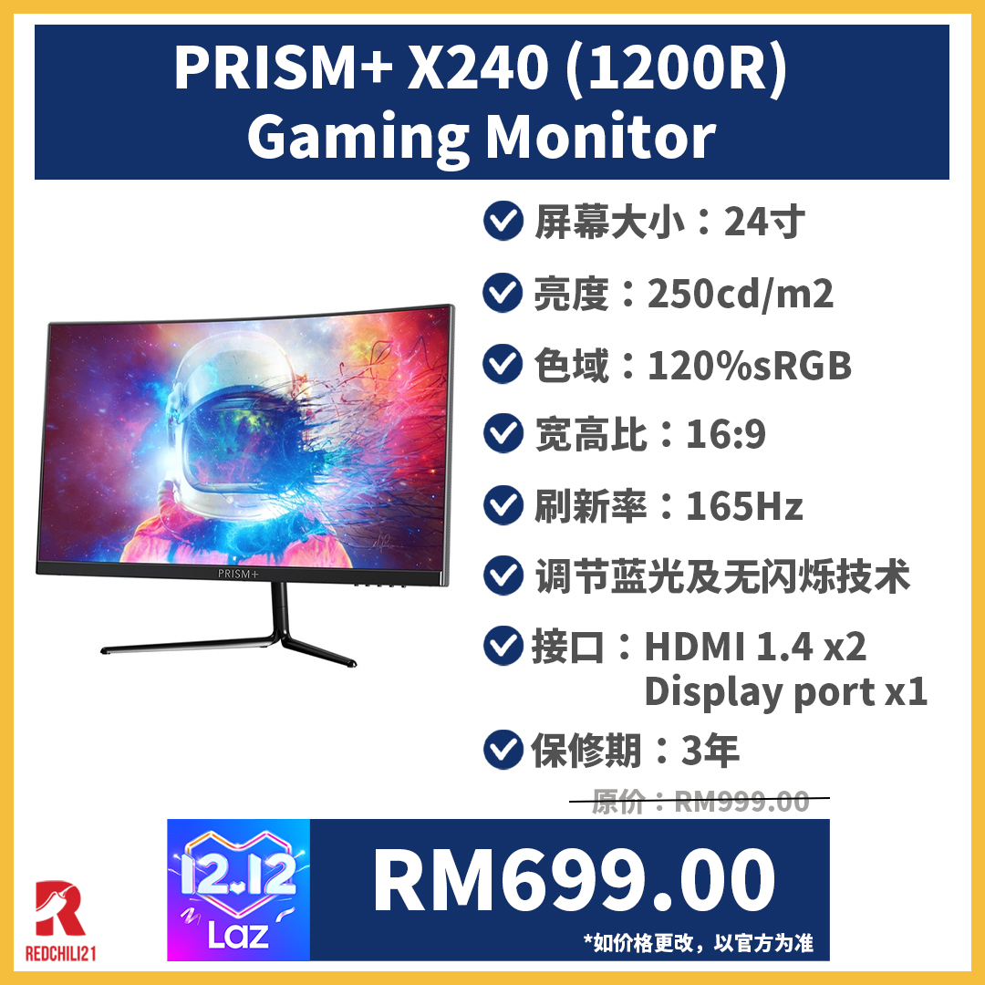 ▪ PRISM+ X240 (1200R) Gaming Monitor 显示器