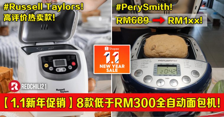 以下为大家推荐8款性价比高的全自动面包机,价格不超过RM300就能入手!趁着 Shopee 1月1日新年大促销,购买可享有折扣优惠哦!