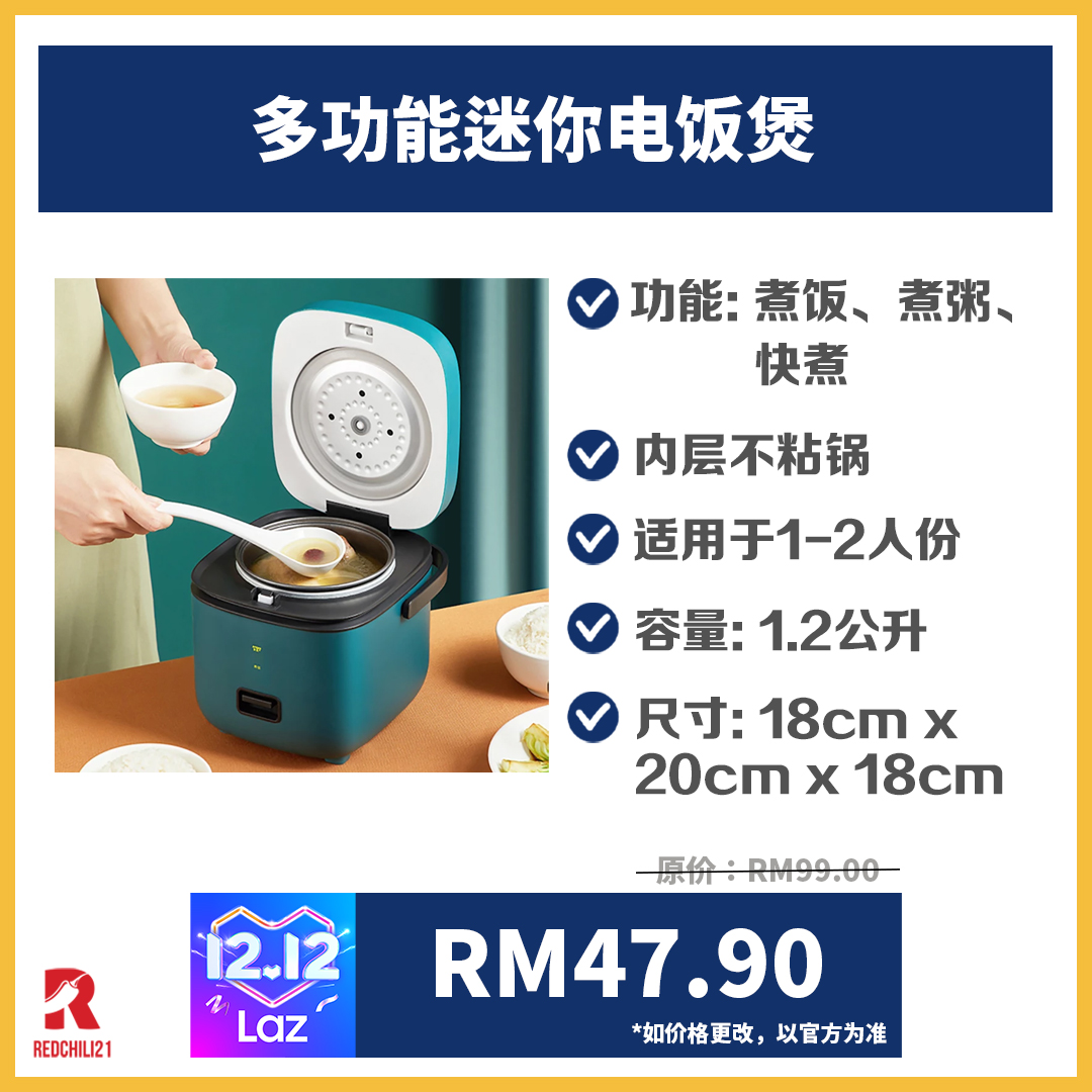 以下就是8款网络销量最佳、RM300以内的多功能电饭锅,12月12日至14日在 Lazada 买还有更便宜的促销价呢!